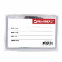 Упаковка 10 шт. Бейдж школьника горизонтальный (55х90 мм), на ленте со съемным клипом, серый, BRAUBERG, 235765: сравнение цен, характеристики, фото, актуальное наличие и цены.