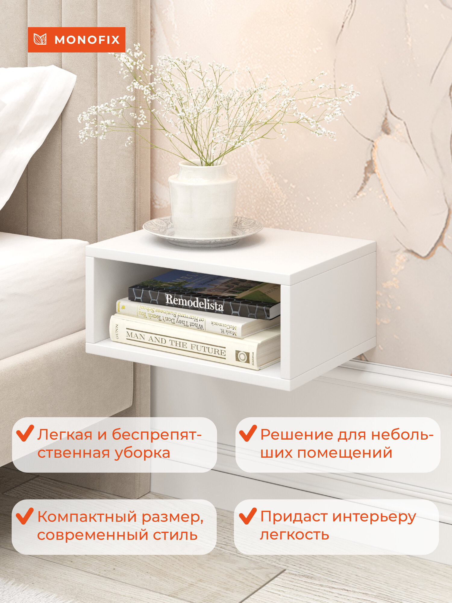 Купить Белая прикроватная тумба навесная (подвесная) MONOFIX одос, ЛДСП с доставкой по всей России. Белая прикроватная тумба навесная (подвесная) MONOFIX одос, ЛДСП: сравнение цен, характеристики, фото, актуальное наличие и цены.