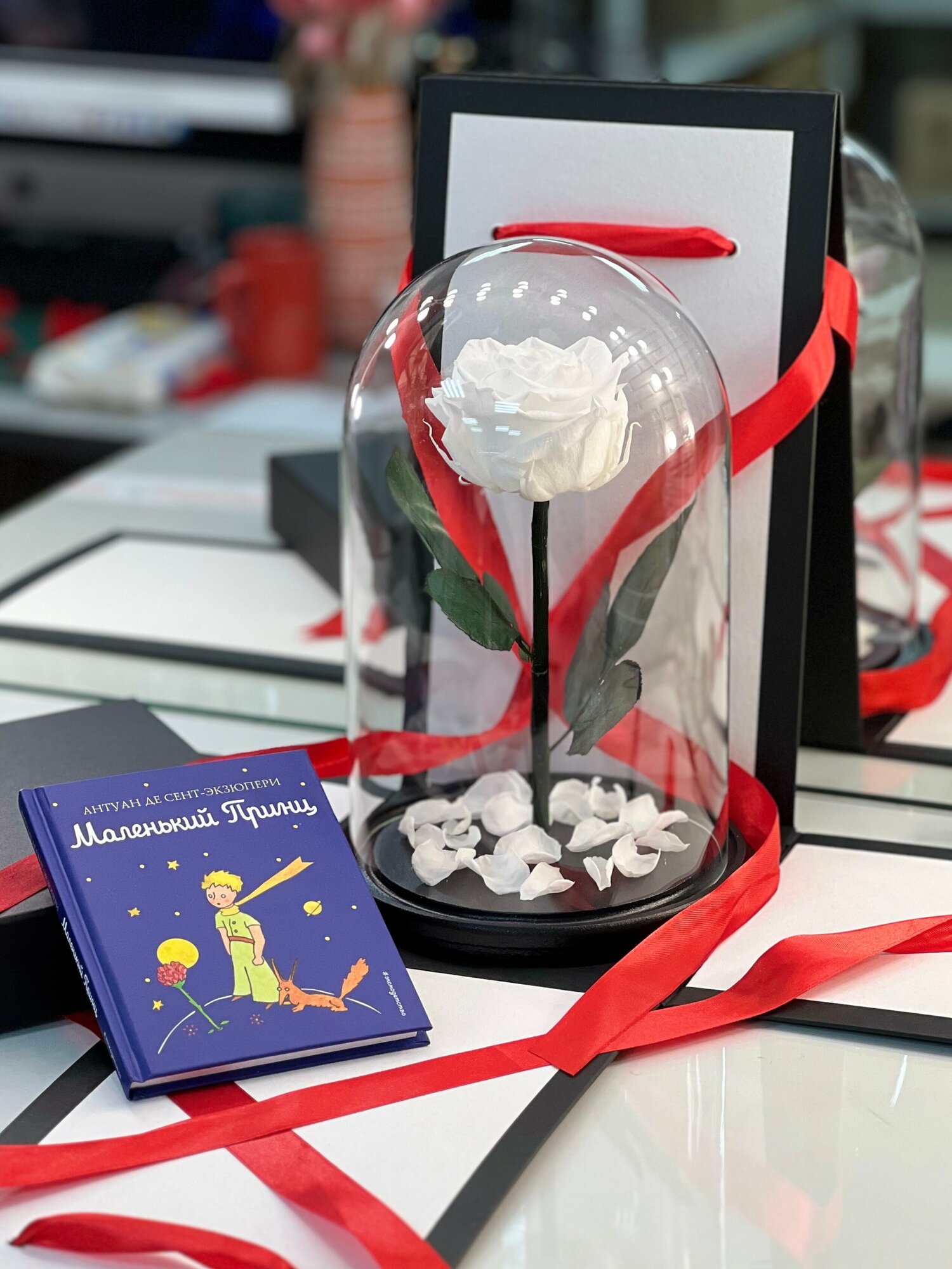 Белая роза в колбе «Премиум» в подарочной коробке с вау эффектом/26 см /Живет 5 лет!: сравнение цен, характеристики, фото, актуальное наличие и цены.