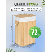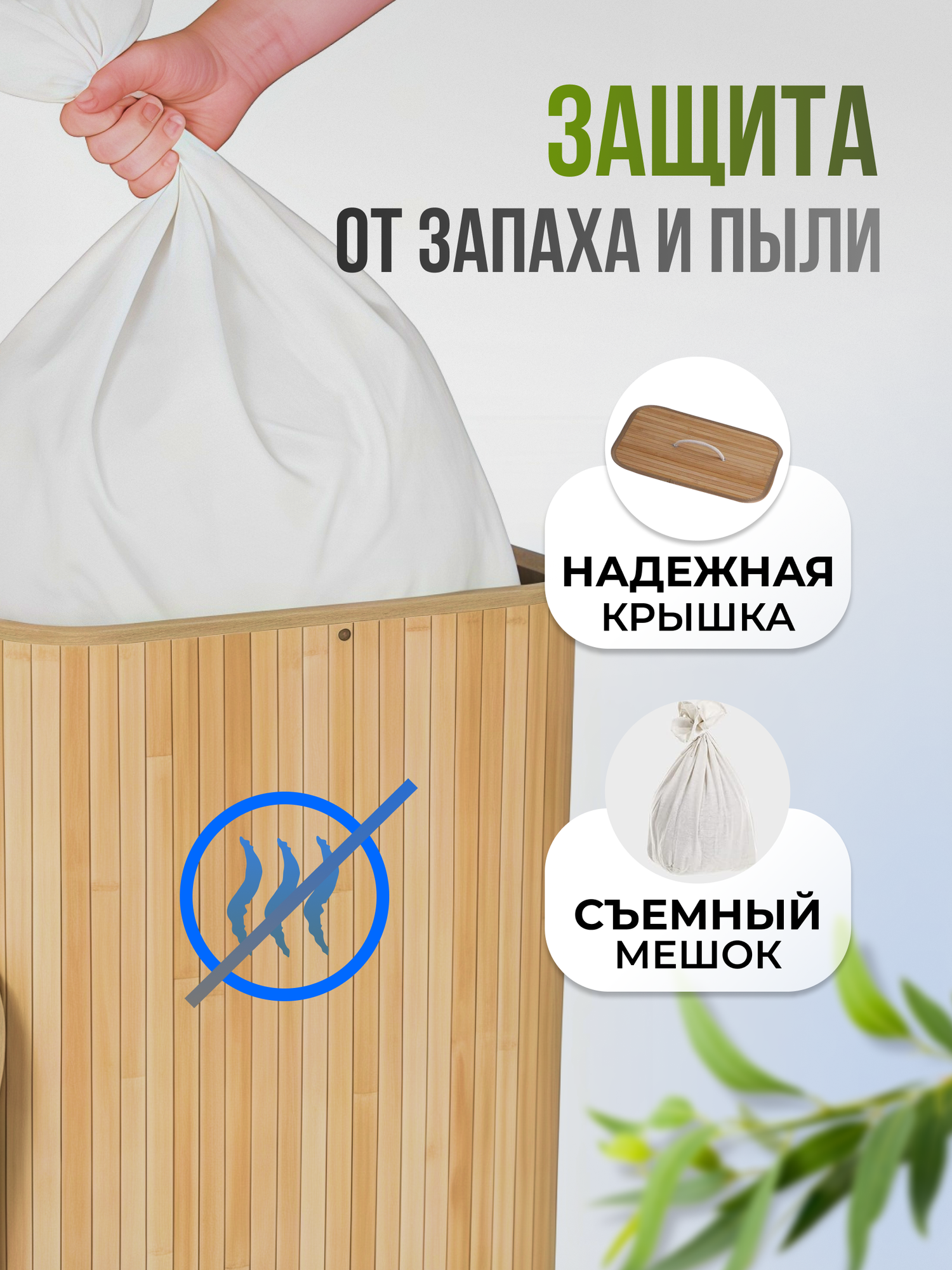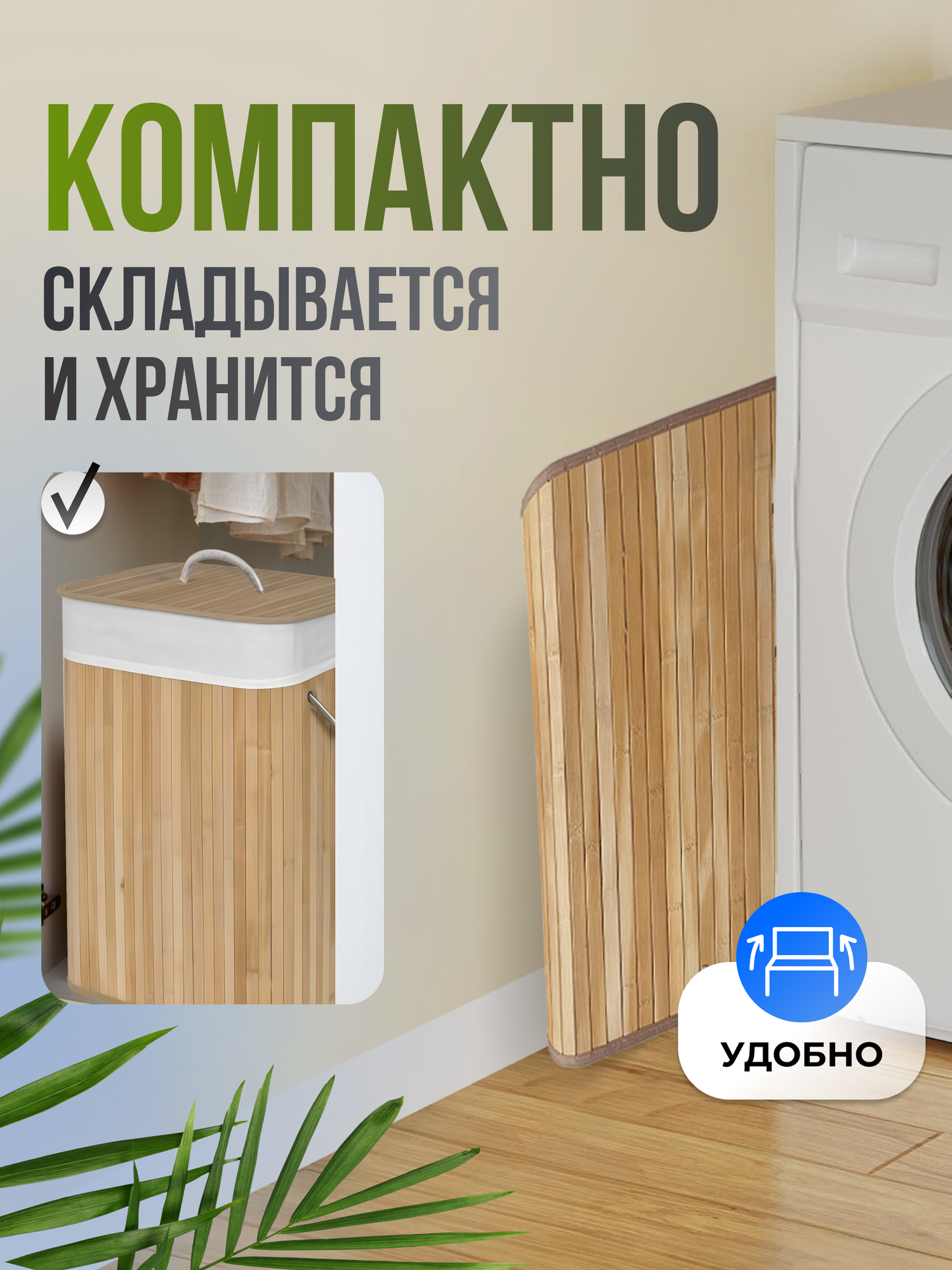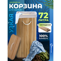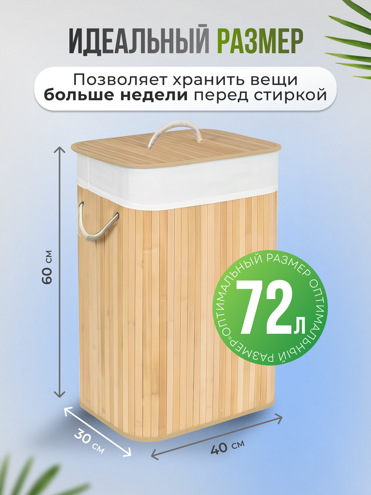 Корзина для белья из бамбука с крышкой Homium, большая корзина (40*30*60см, 72л, бельевая): сравнение цен, характеристики, фото, актуальное наличие и цены.