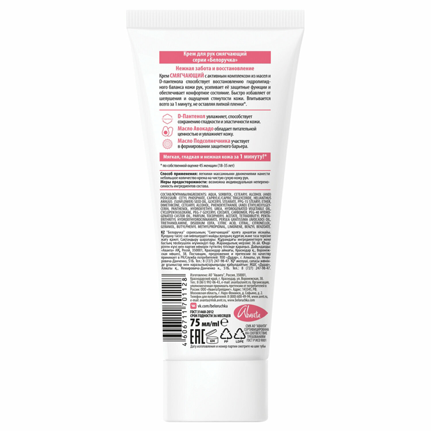 | Активный ингредиент | витамин E, пантенол, сорбитол |
