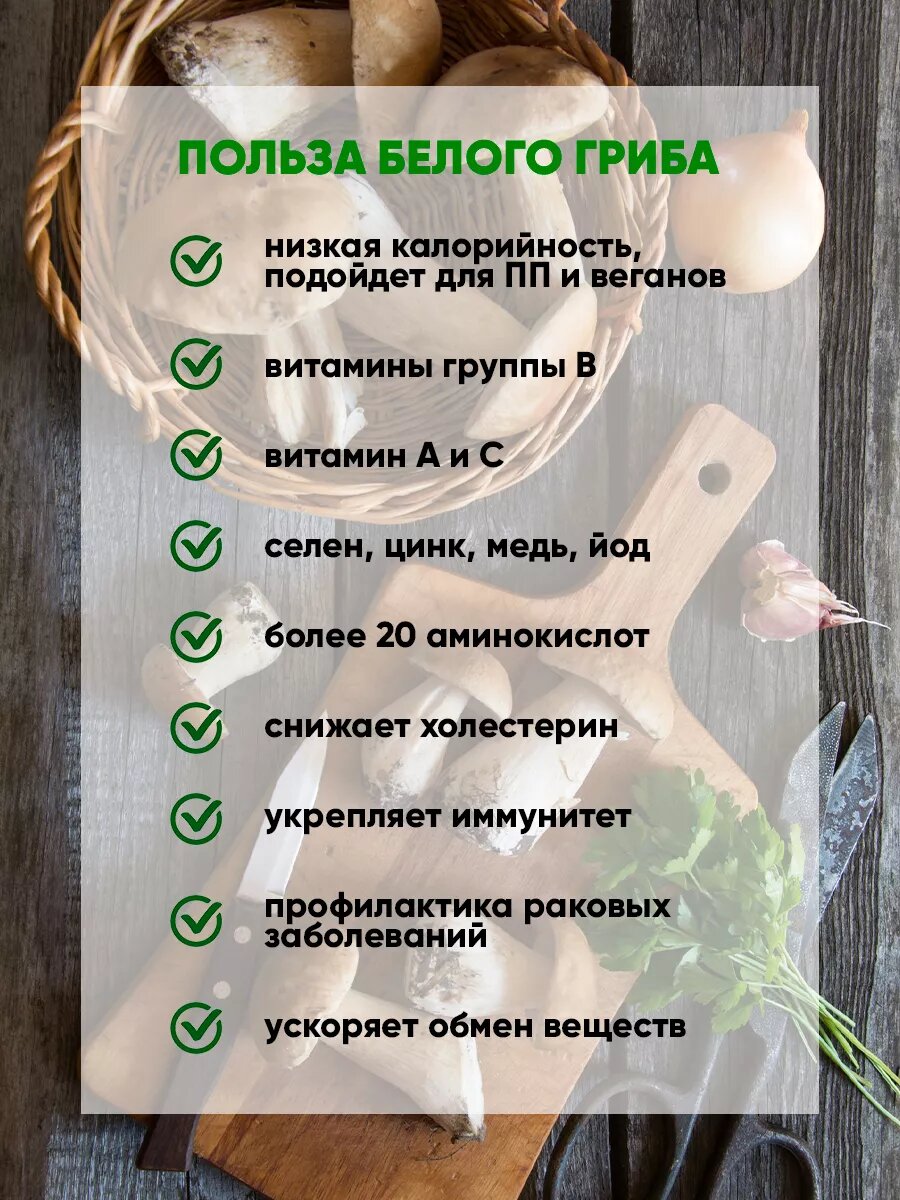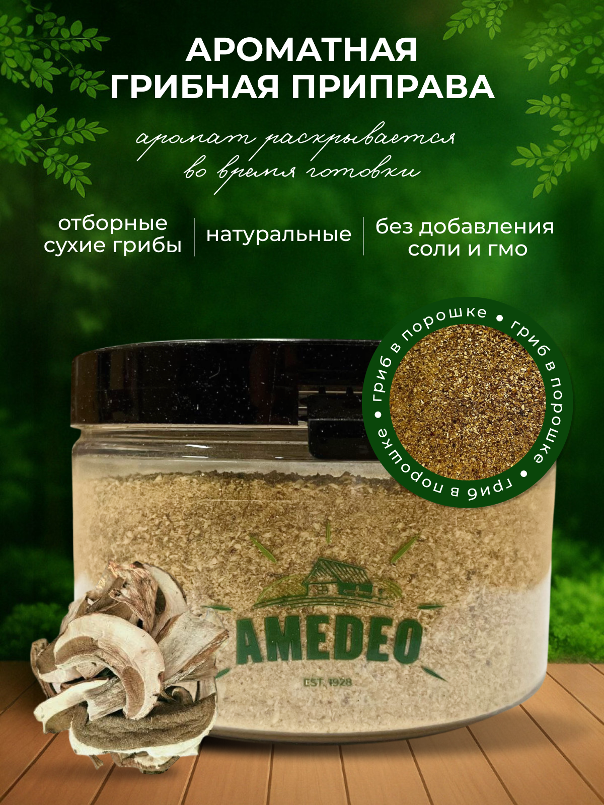 Сушеные белые грибы AMEDEO молотые в порошок природный и натуральный продукт с незабываемым вкусом и ароматом. Грибы вручную собираются в экологически чистых лесах Томской обл. и Алтае, вдали от производств и дорог. Свежие грибы в течении 1 часа после сбора, ещё раз инспектируются, моются, тонко нарезаются и сушатся на итальянском оборудовании при низкой температуре, что сохраняет пользу грибов и аромат. Никакой химии и консервантов, только натуральные грибы данные нам природой в упаковке. Отборные сушеные грибочки собранные, высушенные и прошедшие тщательный контроль. Белые грибы - вкуснейшие и полезные грибы, популярные во многих европейских и азиатских странах. Они содержат мало калорий, но богаты белком и клетчаткой, что делает их ценным инструментом для любого плана питания. Заменители мясных белков, дают организму чувство сытости, являются источником витамина Д и других важных витаминов и минералов. Грибы являются низкокалорийным продуктом, поэтому подходят для правильного питания, ПП здорового образа жизни, а также в пост. Из грибов сушеных получается очень вкусный грибной суп или грибы с картошкой. Грибы сухие можно использовать их в качестве приправы к другим кулинарным изделиям, идеально подходят для приготовления супов, соусов, жаркого и других блюд, также добавляют в пироги, жаркое, омлеты, супы и в другие блюда. Выращивание грибов это сложный процесс и мы следим за каждым этапом, ведь мы производим натуральные алтайские продукты. Попробуйте наивкуснейшие алтайские белые грибы сушеные экстра молотые в порошок. Сушёные грибы можно использовать в разных типах питания, например: