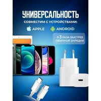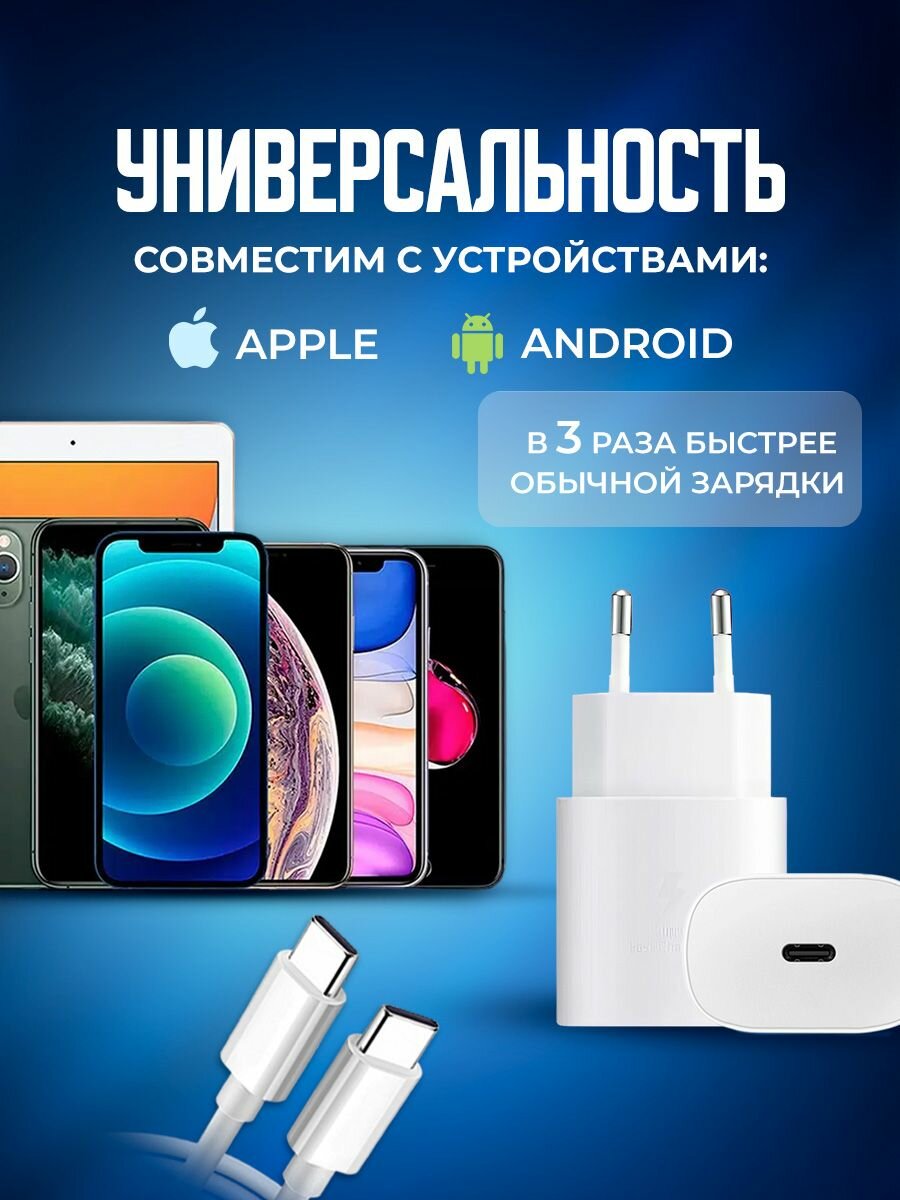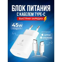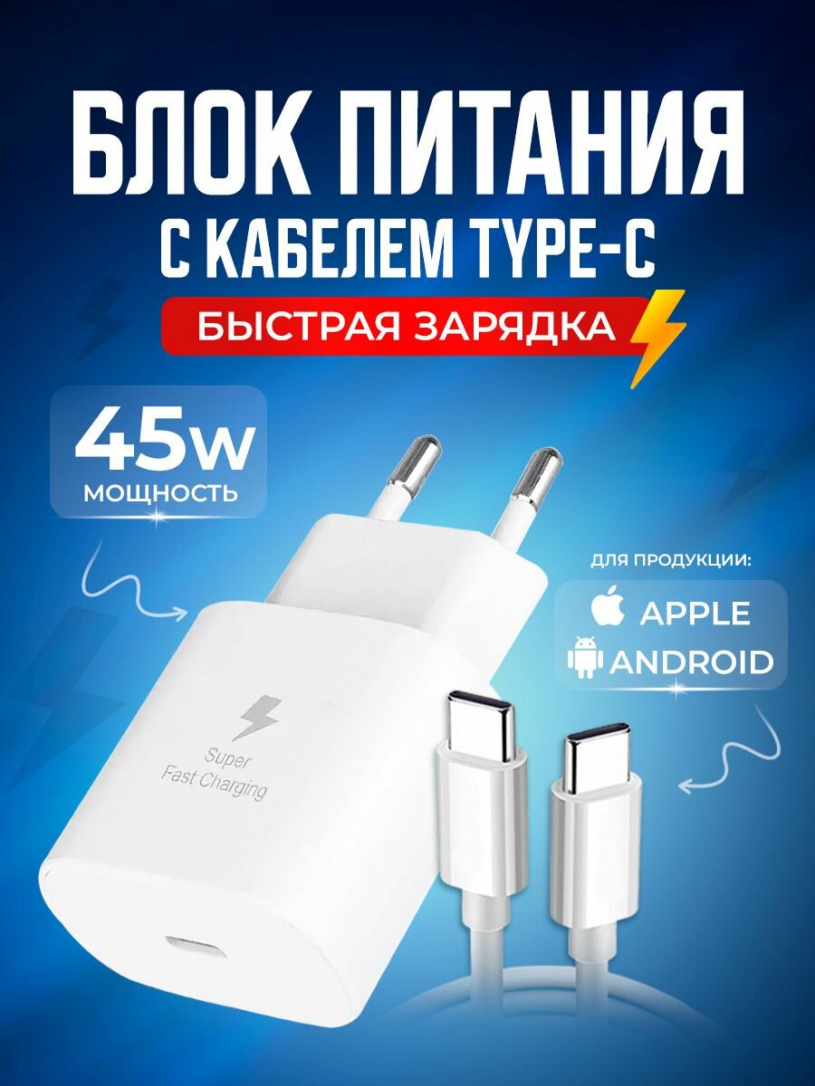 Белые кабель с блоком питания 1.5 м Type C на Type С 3A 45W для быстрой зарядки телефона Android: сравнение цен, характеристики, фото, актуальное наличие и цены.