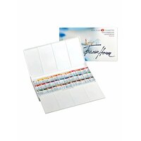 | Дополнительная информация | состав набора: кадмий лимонный, кадмий желтый средний, охра желтая, золотистая, тициановая, кадмий красный светлый, охра красная, железоокисная светло-красная, карминовая, краплак красный светлый, фиолетовая, ультрамарин, ярко-голубая, кобальт синий, индиго, желто-зеленая, изумрудно-зеленая, зеленая, сиена натуральная, умбра, умбра жженая, марс коричневый, сепия, нейтрально-черная; набор представлен в пластиковом пенале со съемной палитрой, при необходимости в пустых нишах пенала можно разместить до 12 дополнительных цветов; упаковка: картонная коробка 27 х 14,5 х 3 см |