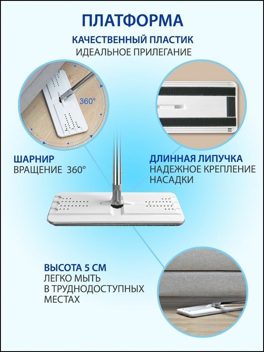 Купить Белый КОТ — Швабра для мытья полов с ведром для отжима и полоскания 9 л, насадка из микрофибры для сухой и влажной уборки с доставкой по всей России.