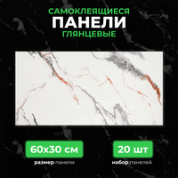 Купить Белый мрамор, 60х30 см плитка глянцевая, самоклеящиеся панели для стен, декор для дома на кухню, в ванную (арт. 119) 20 шт. с доставкой по всей России.