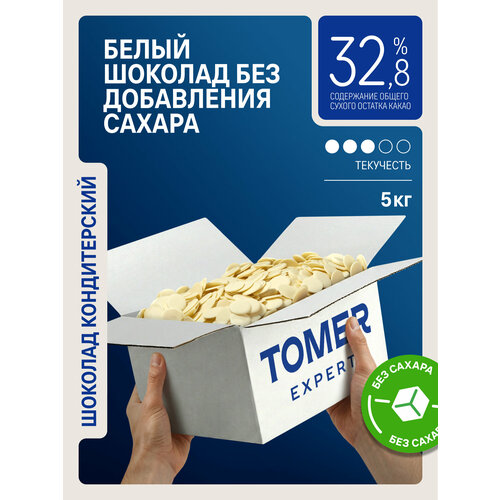 Белый шоколад Tomer Expert 5 кг без добавления сахара — профессиональный кондитерский белый шоколад в каллетах для кондитеров, шоколатье, пекарен, кафе, ресторанов, кондитерских цехов и пищевого производства. Большой формат 5 кг удобен для тех, кто работает с объемом, делает десерты на заказ, собирает праздничные витрины и ценит стабильный результат в каждой партии.