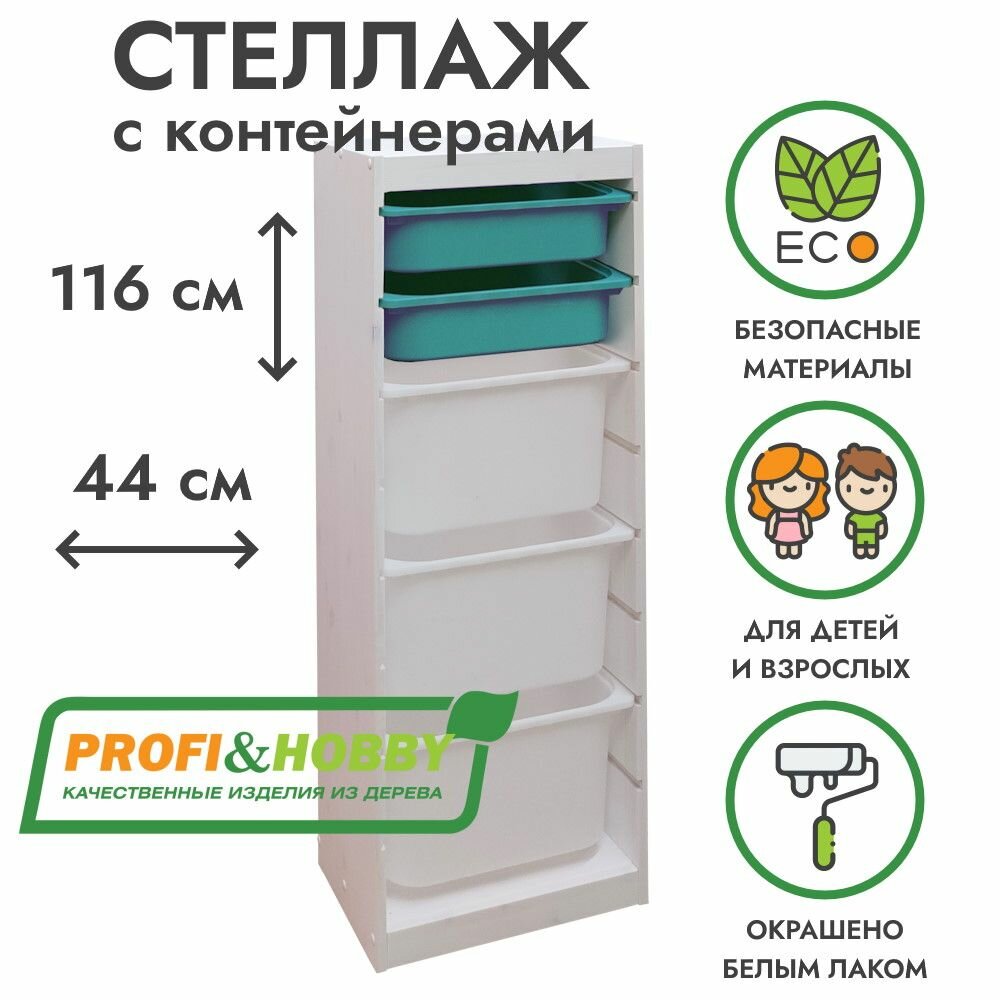 Белый стеллаж труфаст 44х30х116 с бирюзовыми (2 шт) и белыми (3 шт) контейнерами: сравнение цен, характеристики, фото, актуальное наличие и цены.