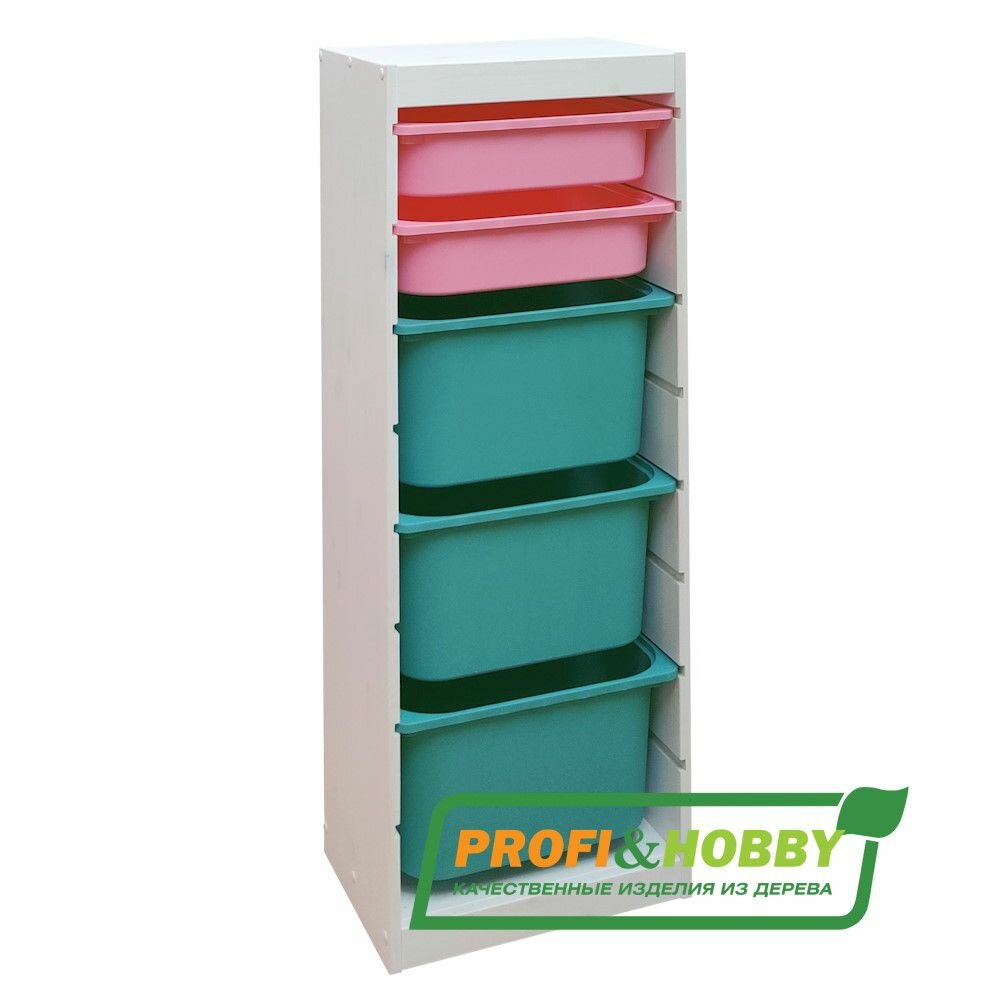Белый стеллаж труфаст 44х30х116 с розовыми (2 шт) и бирюзовыми (3 шт) контейнерами: сравнение цен, характеристики, фото, актуальное наличие и цены.
