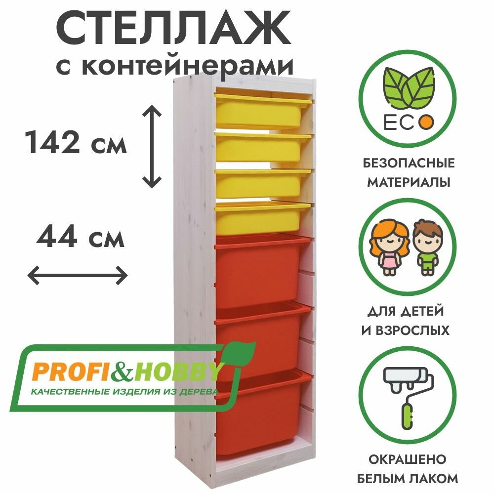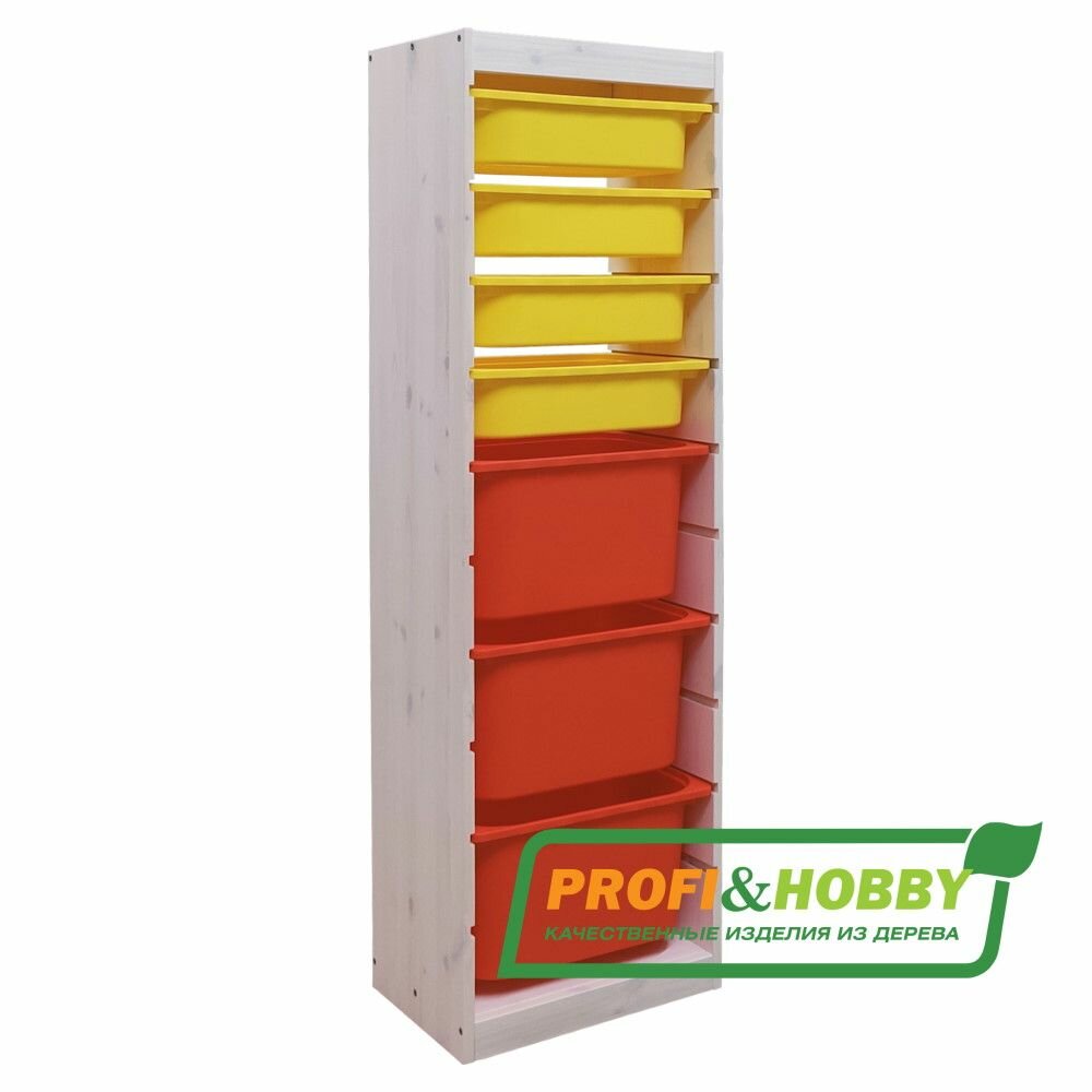Белый стеллаж труфаст 44х30х142 с желтыми (4 шт) и оранжевыми (3 шт) контейнерами: сравнение цен, характеристики, фото, актуальное наличие и цены.