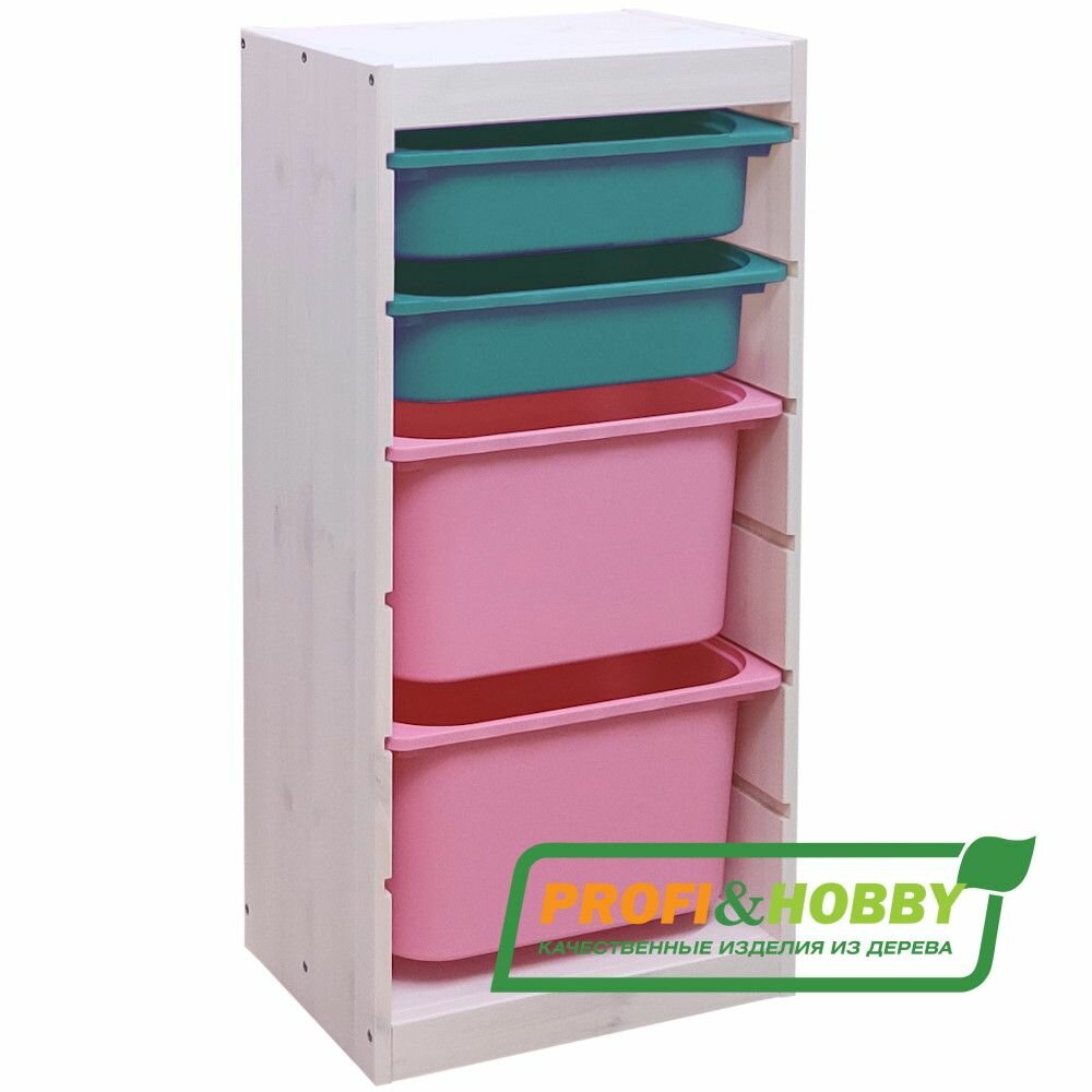 Белый стеллаж труфаст 44х30х91 с бирюзовыми (2 шт) и розовыми (2 шт) контейнерами: сравнение цен, характеристики, фото, актуальное наличие и цены.