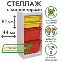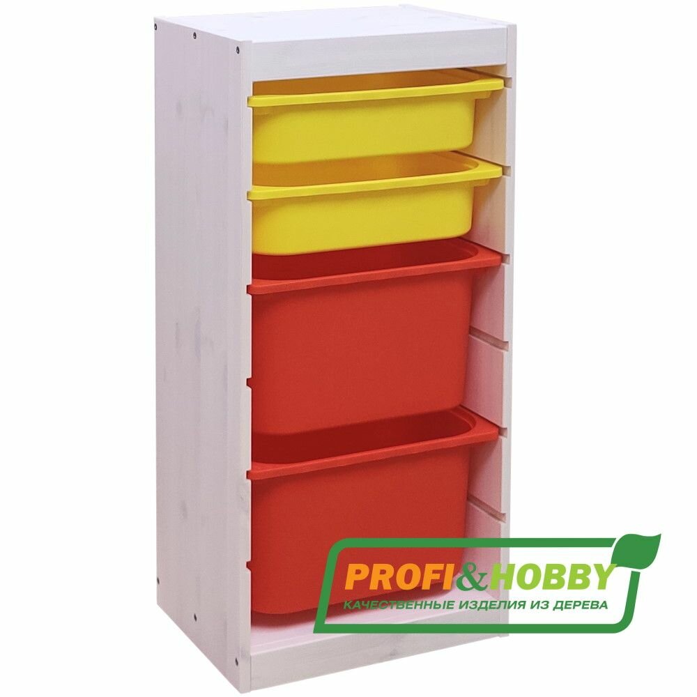 Купить Белый стеллаж труфаст 44х30х91 с желтыми (2 шт) и оранжевыми (2 шт) контейнерами с доставкой по всей России.