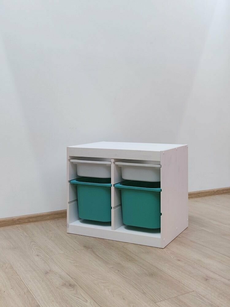 Белый стеллаж труфаст 63х44х52 с белыми (2 шт) и бирюзовыми (2 шт) контейнерами: сравнение цен, характеристики, фото, актуальное наличие и цены.