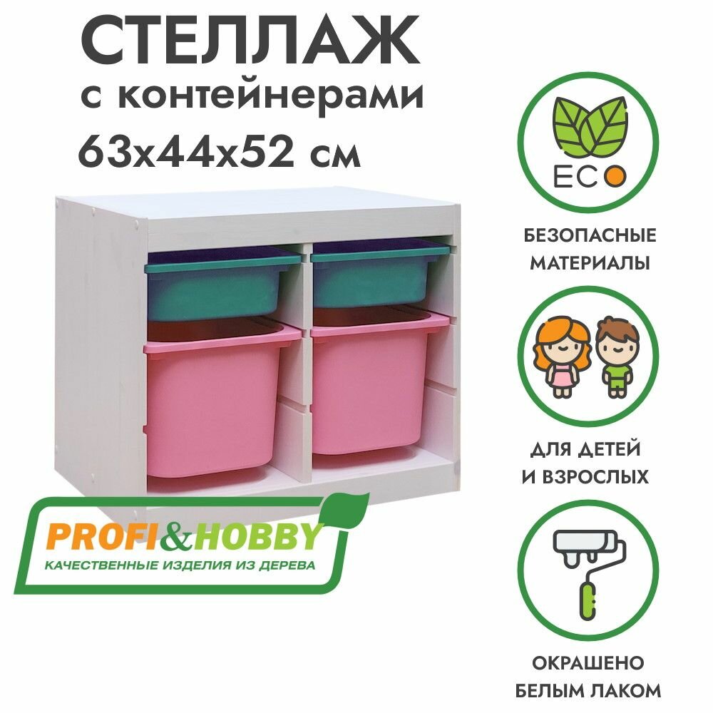 Белый стеллаж труфаст 63х44х52 с бирюзовыми (2 шт) и розовыми (2 шт) контейнерами: сравнение цен, характеристики, фото, актуальное наличие и цены.
