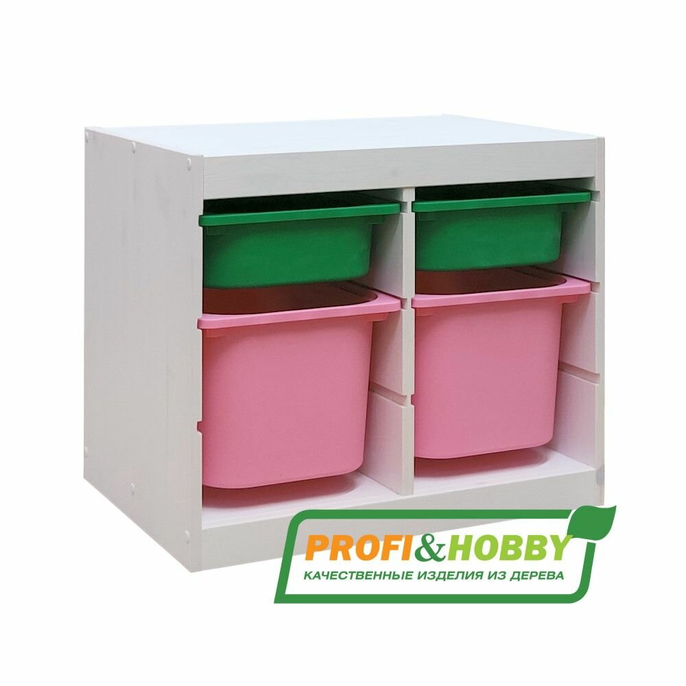 Белый стеллаж труфаст 63х44х52 с зелёными (2 шт) и розовыми (2 шт) контейнерами: сравнение цен, характеристики, фото, актуальное наличие и цены.