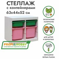 Купить Белый стеллаж труфаст 63х44х52 с зелёными (2 шт) и розовыми (2 шт) контейнерами с доставкой по всей России.