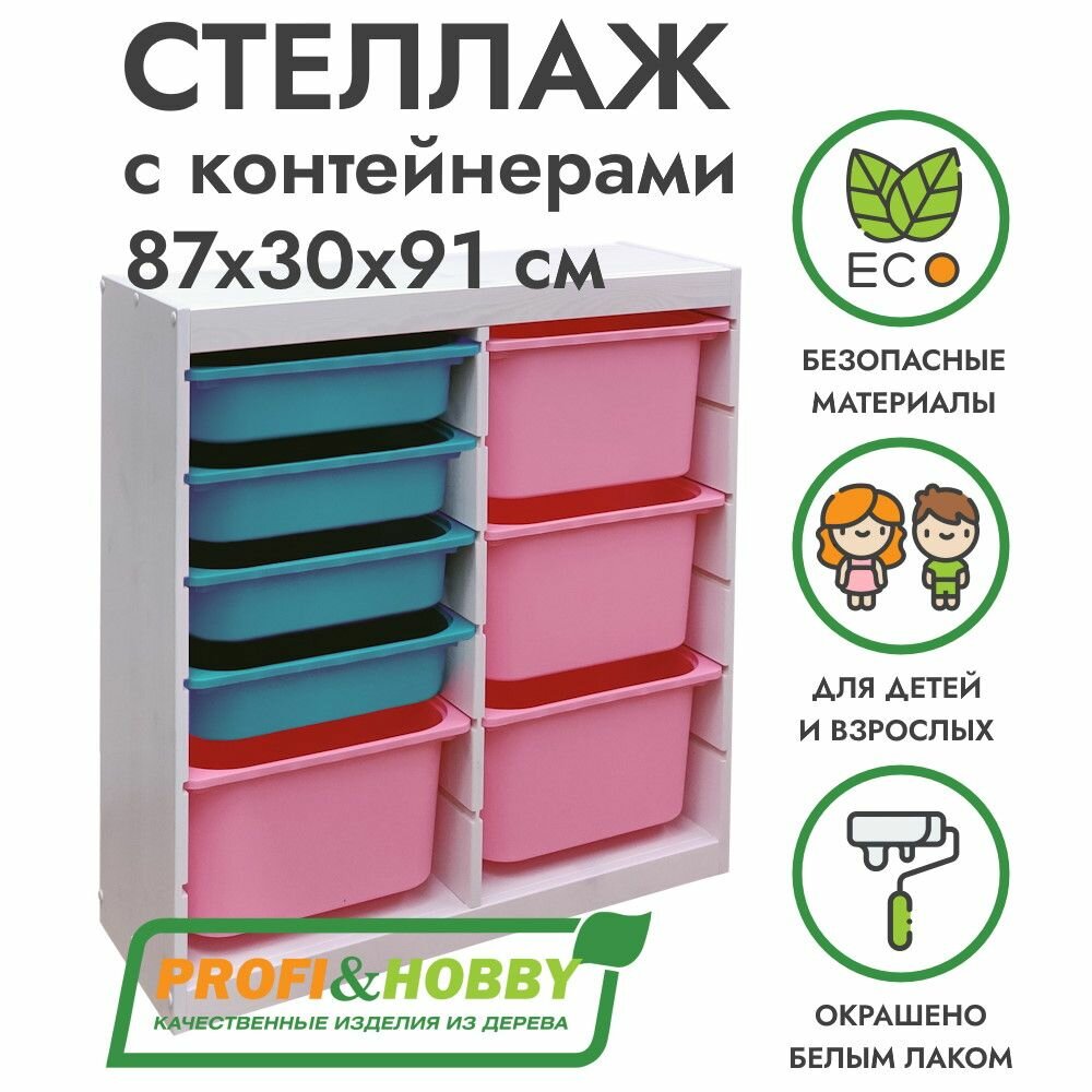 Белый стеллаж труфаст 87х30х91 вертикальный двойной с бирюзовыми (4 шт) и розовыми (4 шт) контейнерами: сравнение цен, характеристики, фото, актуальное наличие и цены.