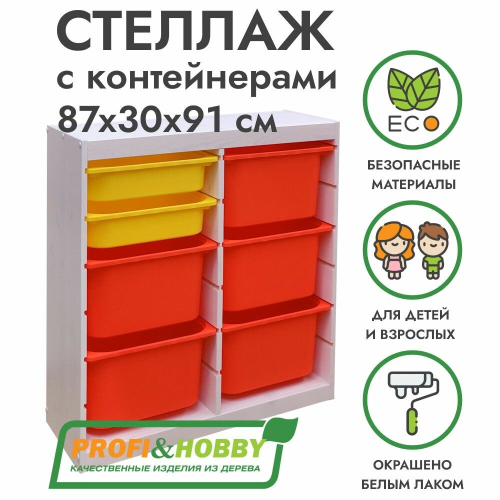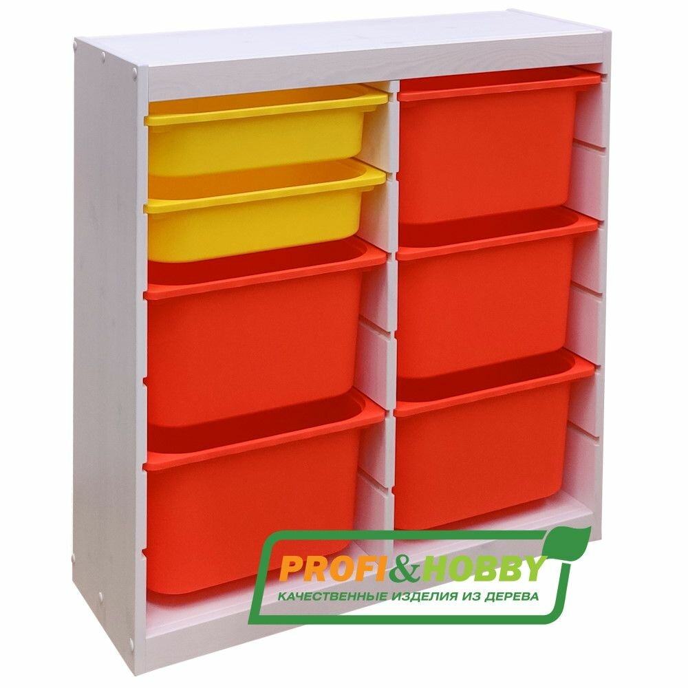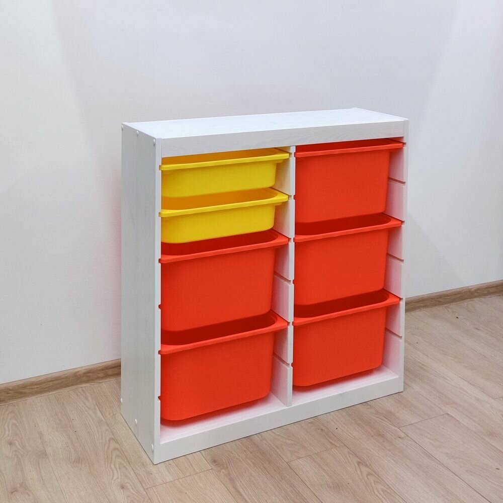 Белый стеллаж труфаст 87х30х91 вертикальный двойной с желтыми (2 шт) и оранжевыми (5 шт) контейнерами: сравнение цен, характеристики, фото, актуальное наличие и цены.