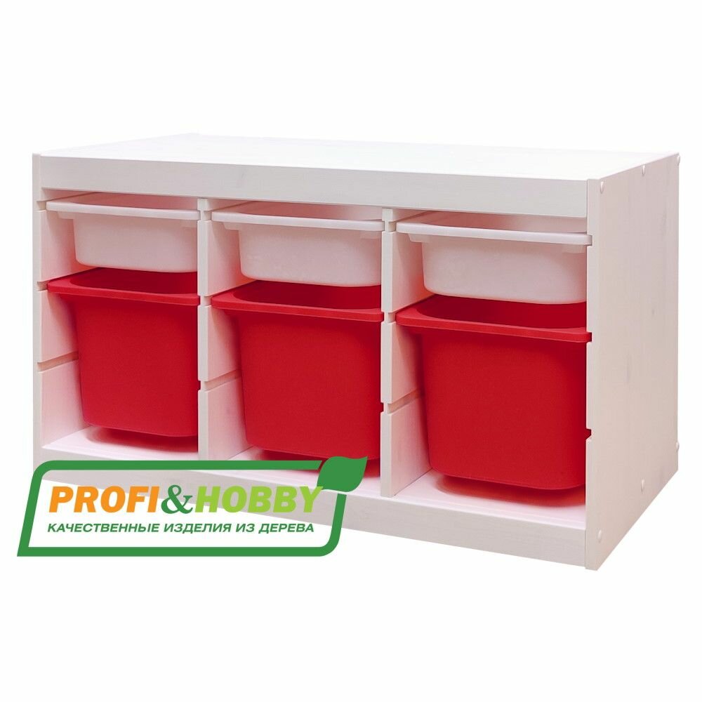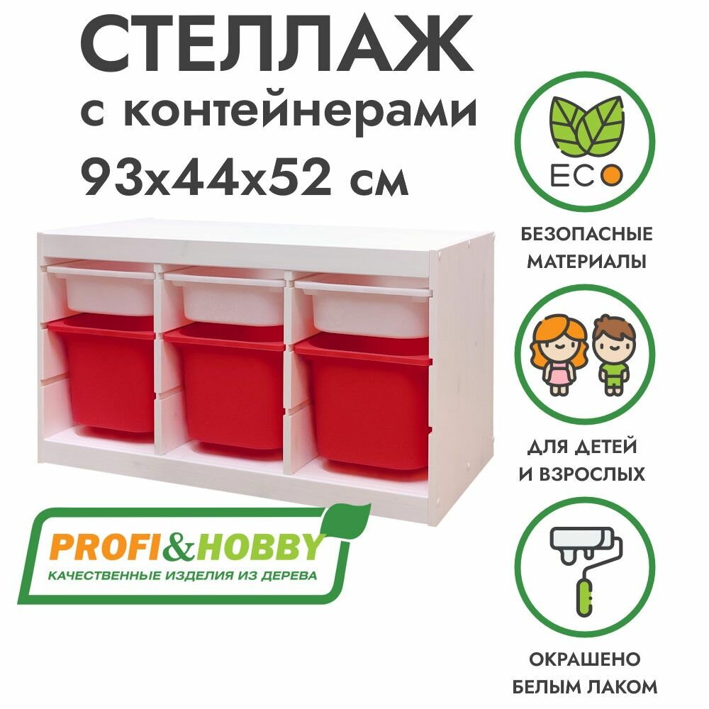 Белый стеллаж труфаст горизонтальный тройной 93х44х52 см с белыми (3 шт) и красными (З шт) контейнерами: сравнение цен, характеристики, фото, актуальное наличие и цены.