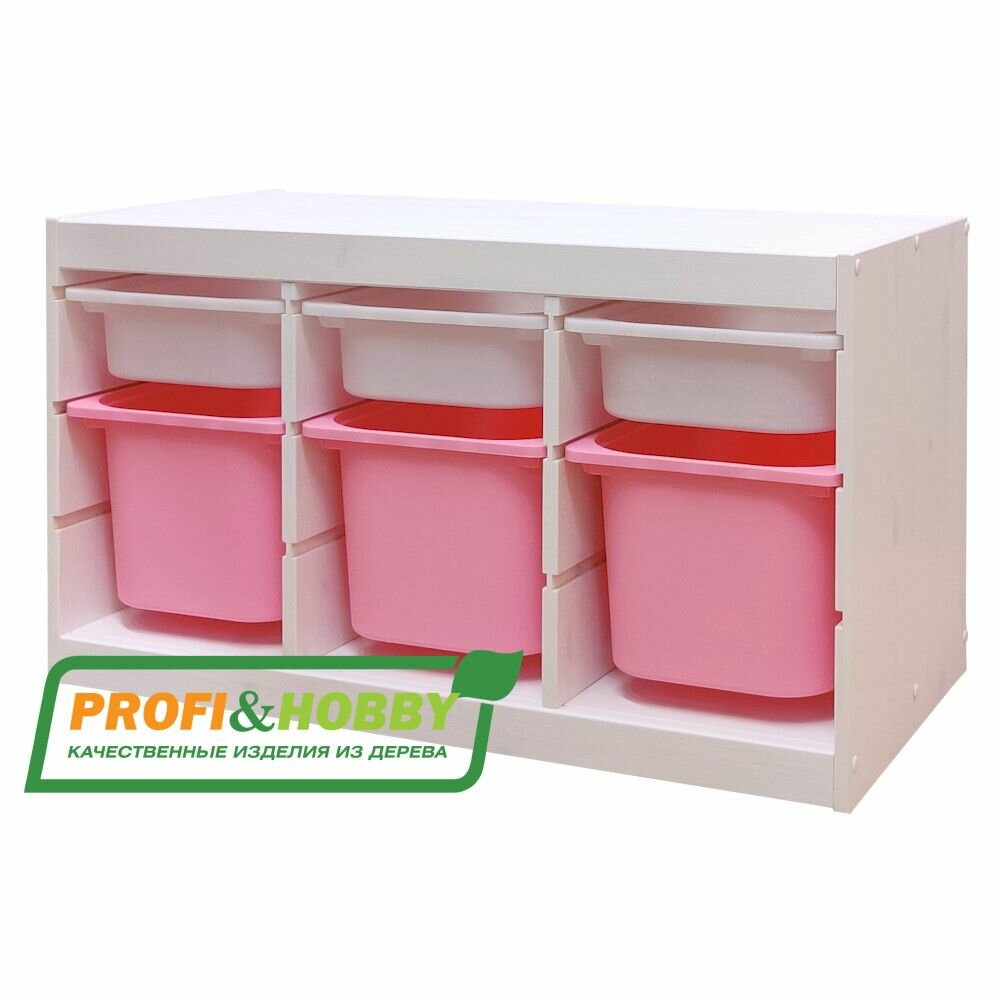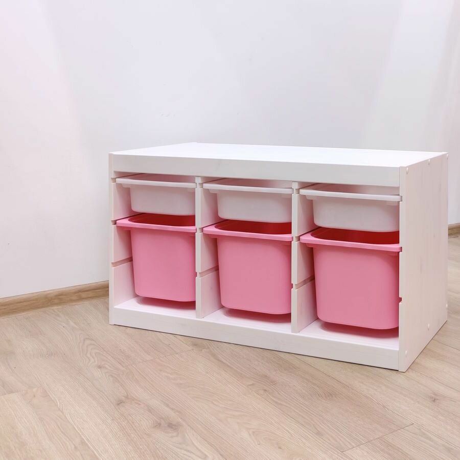 Белый стеллаж труфаст горизонтальный тройной 93х44х52 см с белыми (3 шт) и розовыми (З шт) контейнерами: сравнение цен, характеристики, фото, актуальное наличие и цены.