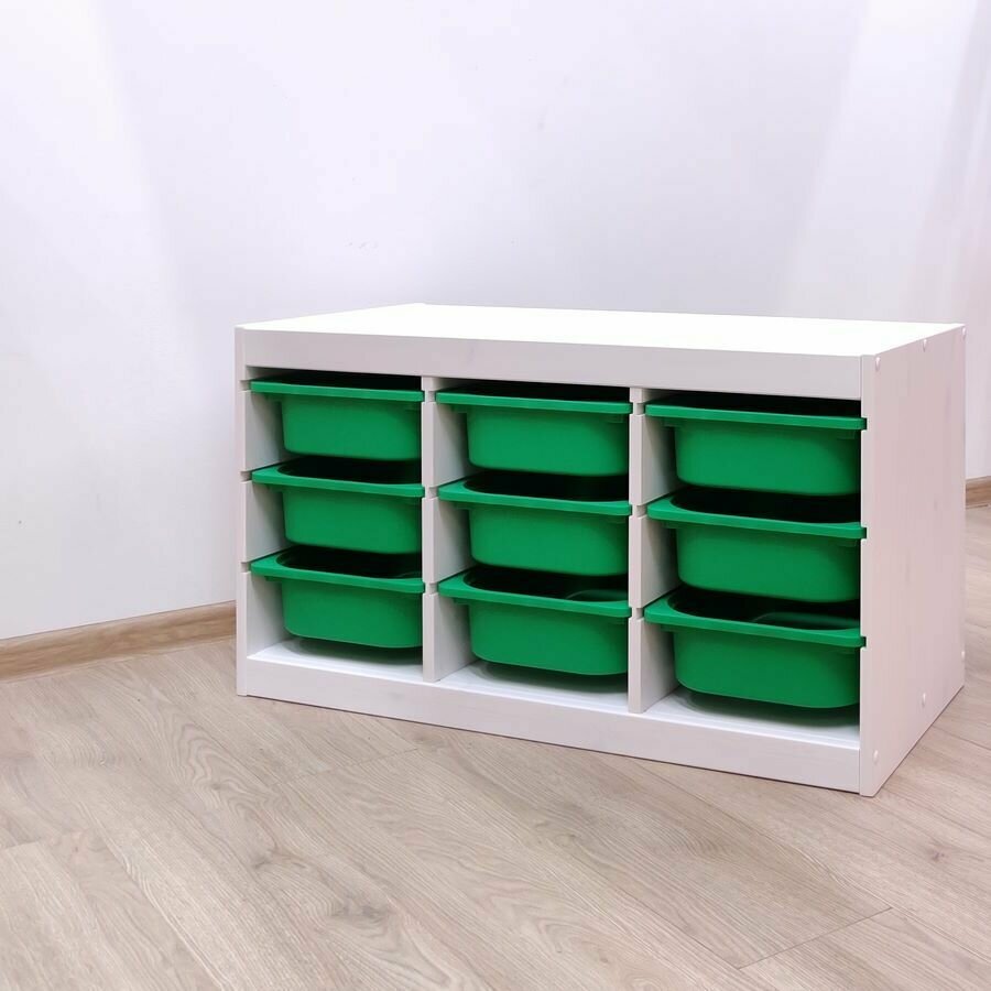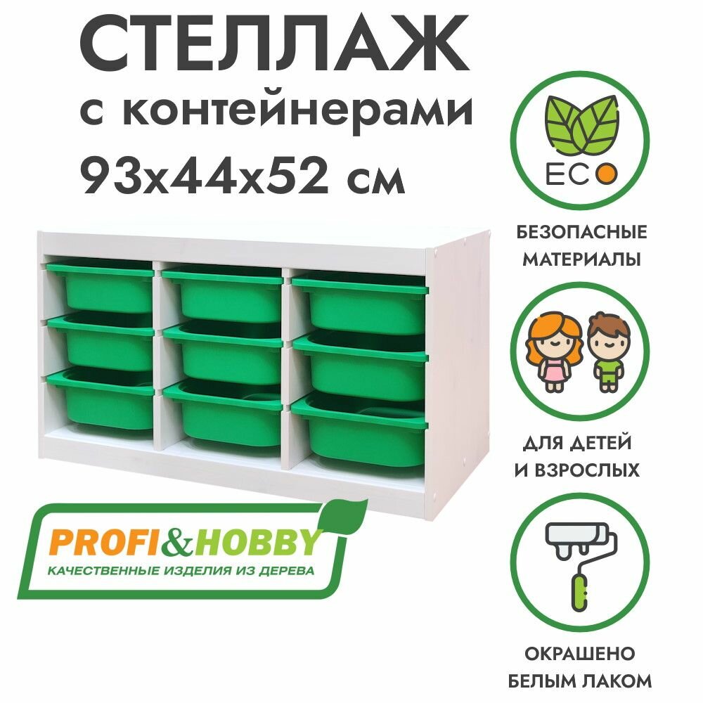Белый стеллаж труфаст горизонтальный тройной 93х44х52 см с зелёными (9 шт) контейнерами: сравнение цен, характеристики, фото, актуальное наличие и цены.