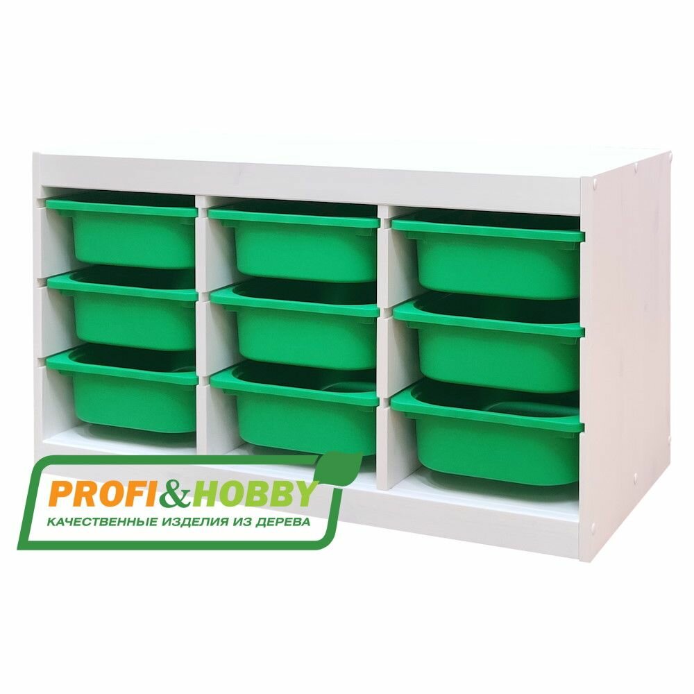 Купить Белый стеллаж труфаст горизонтальный тройной 93х44х52 см с зелёными (9 шт) контейнерами с доставкой по всей России.