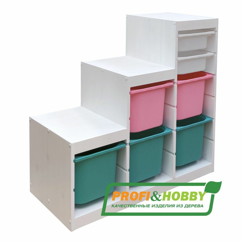 Улучшенная версия TROFAST от Profi&Hobby. Серия деревянной мебели для хранения с легкими пластиковыми контейнерами труфаст . Каркас шкафа изготовлен из массива сосны. Поверхность изделия отшлифована и покрыта белым акриловым лаком. Труфаст - серия удобной и устойчивой мебели для хранения. Создайте индивидуальное решение для хранения, комбинируя разные каркасы и контейнеры. В каркасе подготовлены несколько пазов, в которые вы можете установить контейнеры и в любой момент при необходимости изменить их положение. Расположите модули для хранения на удобной для ребенка высоте, и он сможет самостоятельно достать нужную вещь и навести порядок. Деревянный стеллаж труфаст продаётся в разобранном виде, вся необходимая фурнитура для несложной сборки в комплекте.
