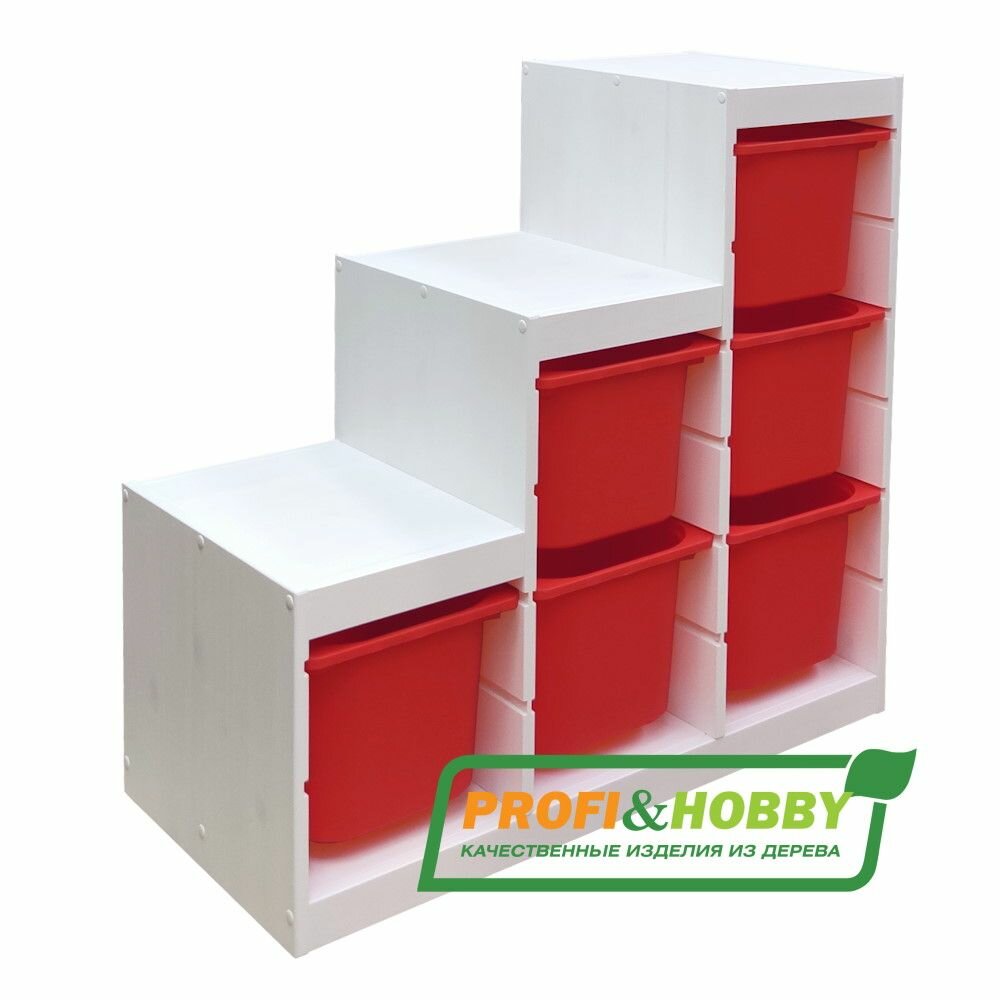 Улучшенная версия TROFAST от Profi&Hobby. Серия деревянной мебели для хранения с легкими пластиковыми контейнерами труфаст . Каркас шкафа изготовлен из массива сосны. Поверхность изделия отшлифована и покрыта белым акриловым лаком. Труфаст - серия удобной и устойчивой мебели для хранения. Создайте индивидуальное решение для хранения, комбинируя разные каркасы и контейнеры. В каркасе подготовлены несколько пазов, в которые вы можете установить контейнеры и в любой момент при необходимости изменить их положение. Расположите модули для хранения на удобной для ребенка высоте, и он сможет самостоятельно достать нужную вещь и навести порядок. Деревянный стеллаж труфаст продаётся в разобранном виде, вся необходимая фурнитура для несложной сборки в комплекте.