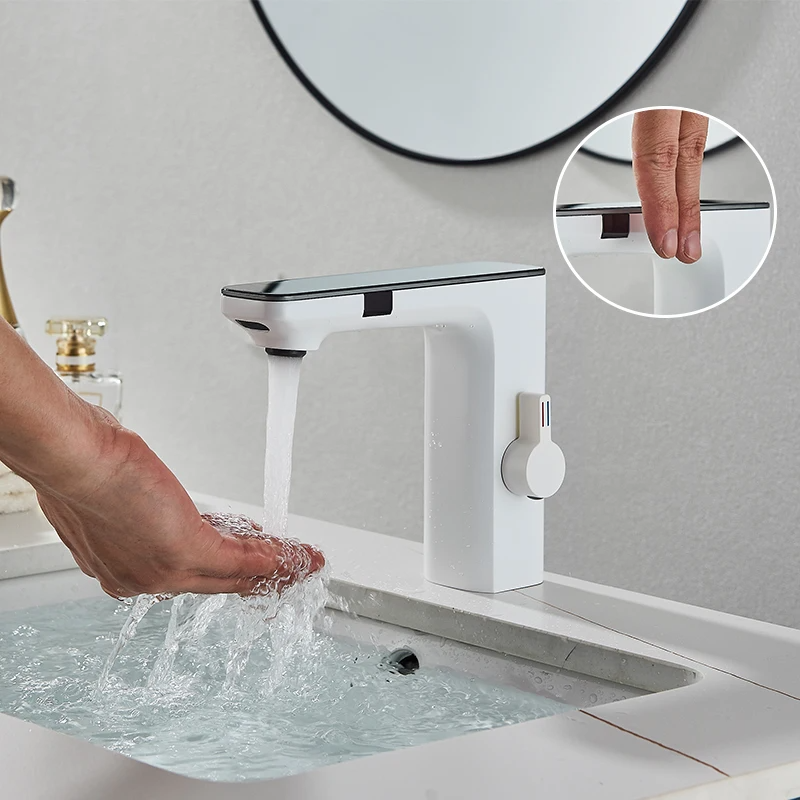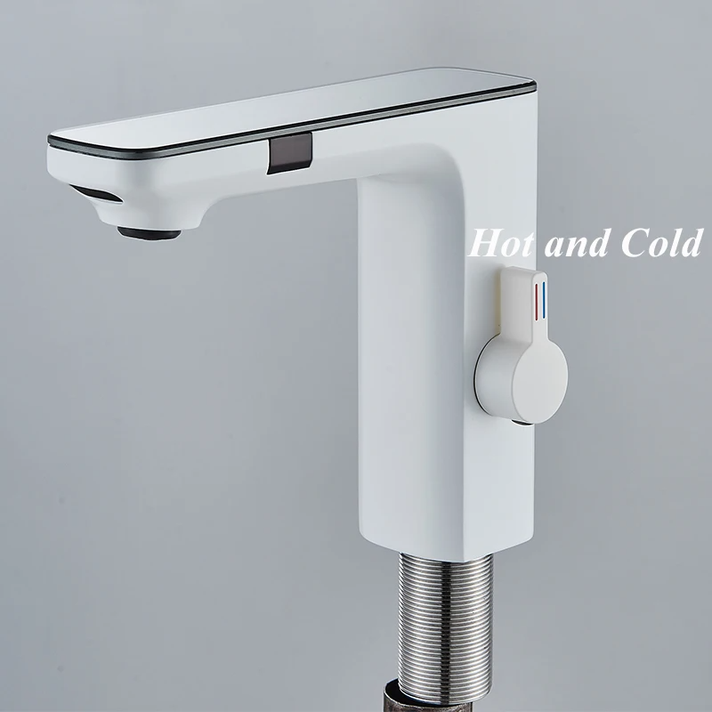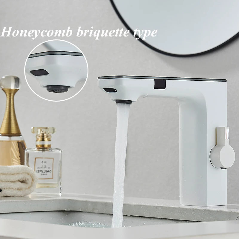 Белый умывальник сенсорный смеситель для ванной с ИК-датчиком LCD-дисплеем и настольным
