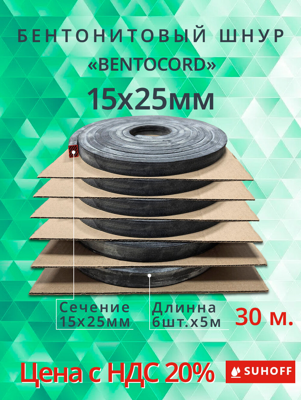 Бентонитовый шнур «BENTOCORD» 15х25 мм, 30 метров: сравнение цен, характеристики, фото, актуальное наличие и цены.