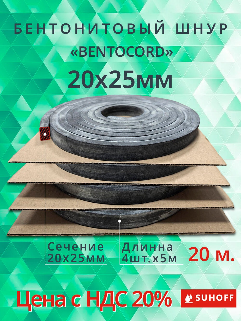 Бентонитовый шнур сечением 20х25мм применяется при ширине заливки от 250 до 400мм.