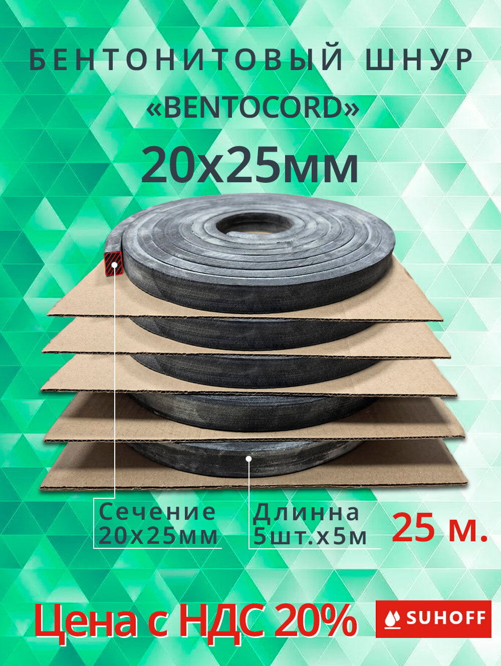 Бентонитовый шнур «BENTOCORD» 20х25 мм, 25 метров: сравнение цен, характеристики, фото, актуальное наличие и цены.