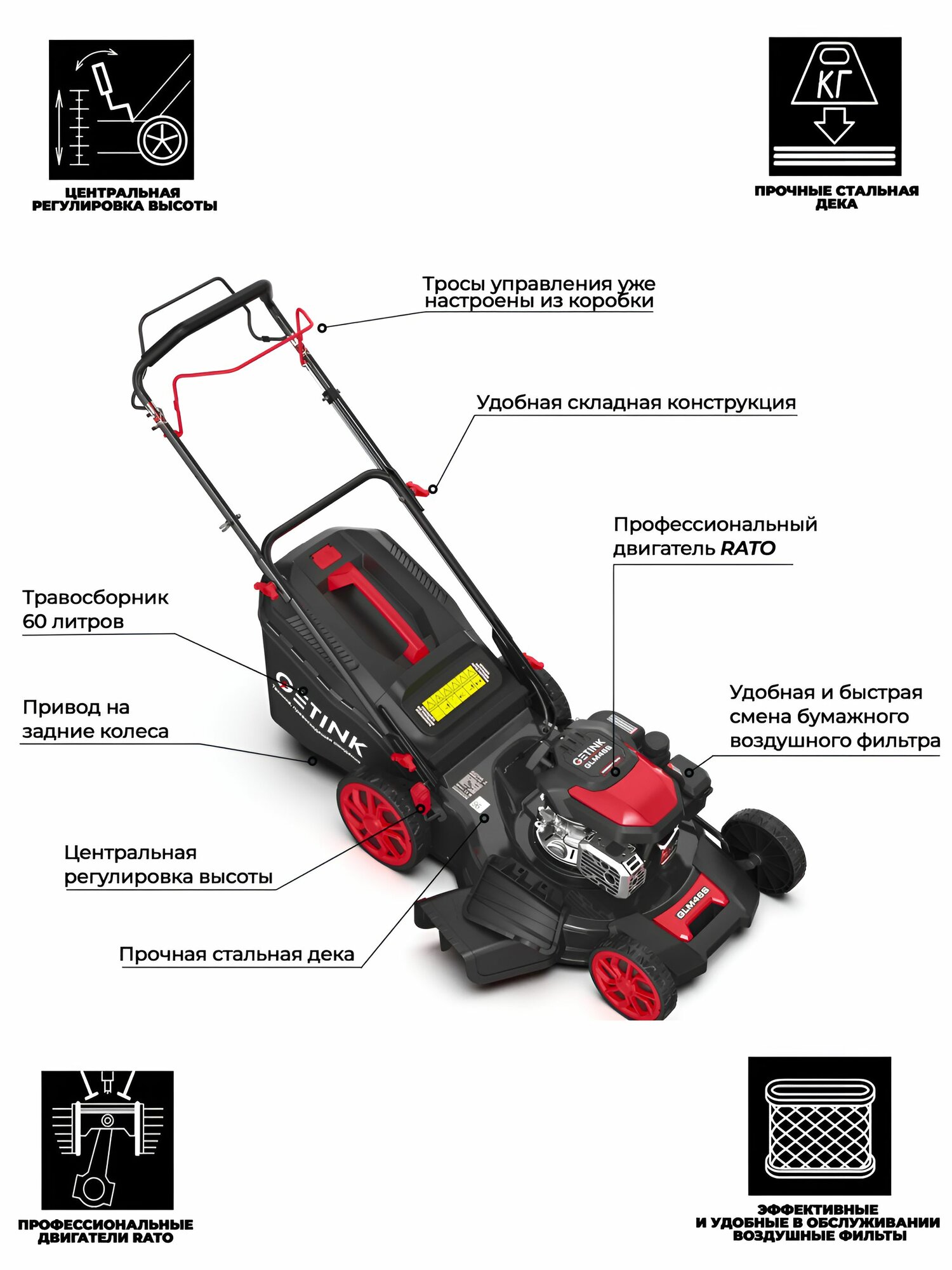 Купить Газонокосилка бензиновая GETINK GLM46P несамоходная с доставкой по всей России. Газонокосилка бензиновая GETINK GLM46P несамоходная: сравнение цен, характеристики, фото, актуальное наличие и цены.