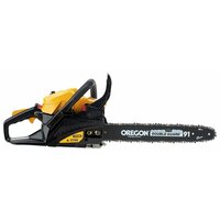 Пила бензиновая цепная мощностью 1,6 лс. предназначена для несложных строительных работ, спиливания мелких деревьев и обрезки сучьев. Долговечный двигатель определяется наличием хромированного покрытия цилиндра. Электронная система зажигания, облегченный запуск ZipStart. Инерционный тормоз цепи, виброизолированные рукоятки, объемный топливный и масляный баки, автоматический насос смазки цепи. Пила отличается небольшим весом, имеет антивибрационную систему, что делает её комфортной в использовании. Автоматическая подача масла предотвращает износ цепи и поломку бензопилы. Также предусмотрен регулировщик подачи масла, что позволяет снизить его расход, если это разумно. Тормоз цепи предназначен для мгновенной остановки цепи в непредвиденных случаях. Данная модель снабжена 35-сантиметровой шиной. Карбюратор Walbro WT840A, катушка зажигания ZCJ-09603D, Центробежная муфта, праймер есть, Эмиссия Евро 2 EDP1. Комплектация: ключ, шина, напильник, отвертка, кожух шины.