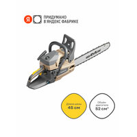 Стальной зубчатый упор облегчает работу и снижает отдачу: можно точнее контролировать распил, делать ровные срезы. Автоматическая система смазки цепи своевременно подаёт нужное количество масла и позволяет продлить срок службы пильной гарнитуры. Лёгкий пуск увеличивает срок службы инструмента и упрощает использование. Натяжение цепи легко регулируется с помощью удобного бокового механизма. Высокоэффективный воздушный фильтр защищает двигатель от пыли и грязи.