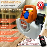 Купить Бензиновый генератор /бензогенератор 1 кВт / генератор для рыбалки, туризма инверторный + масло 2т с доставкой по всей России.