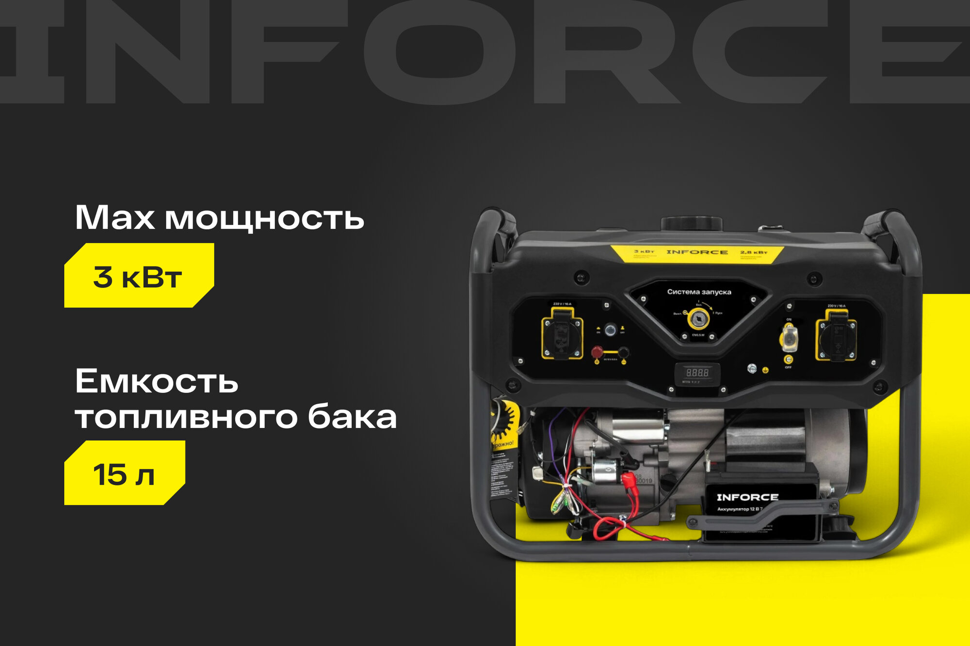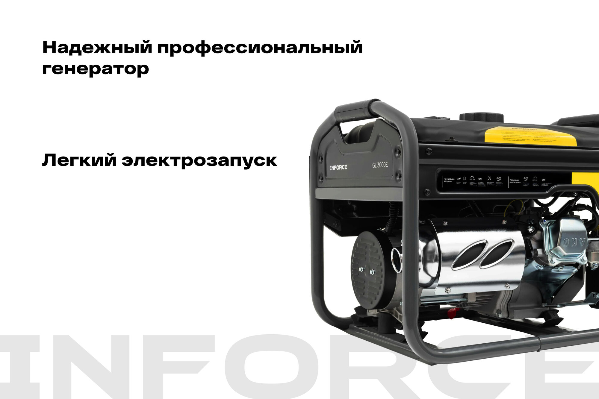 Купить Бензиновый генератор Inforce (3 кВт; эл. стартер; медная обмотка; с АКБ) GL 3000E с доставкой по всей России. Бензиновый генератор Inforce (3 кВт; эл. стартер; медная обмотка; с АКБ) GL 3000E: сравнение цен, характеристики, фото, актуальное наличие и цены.