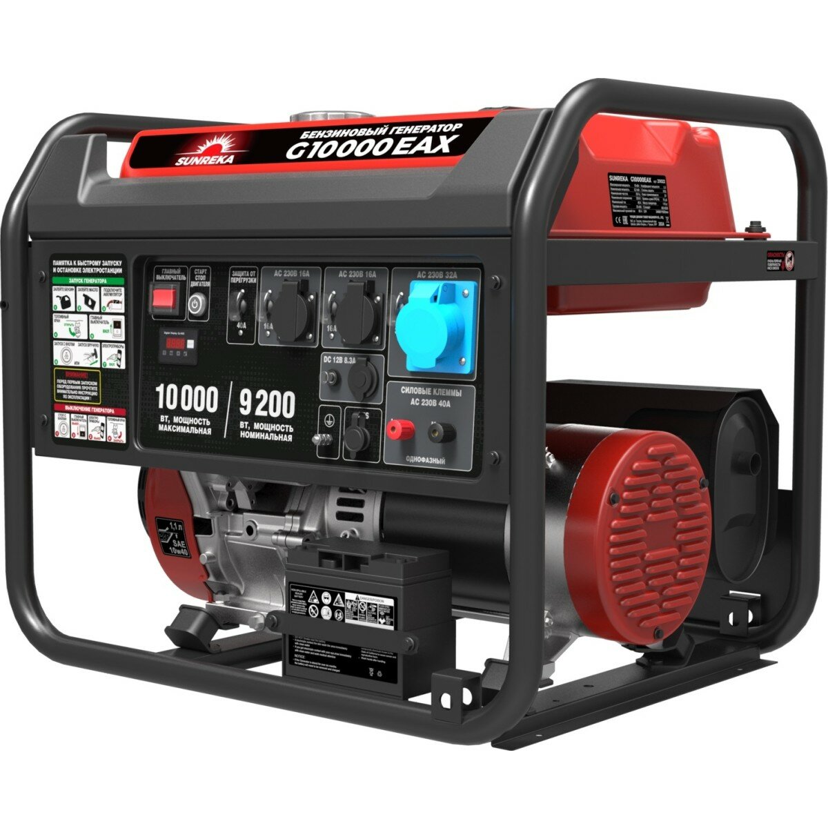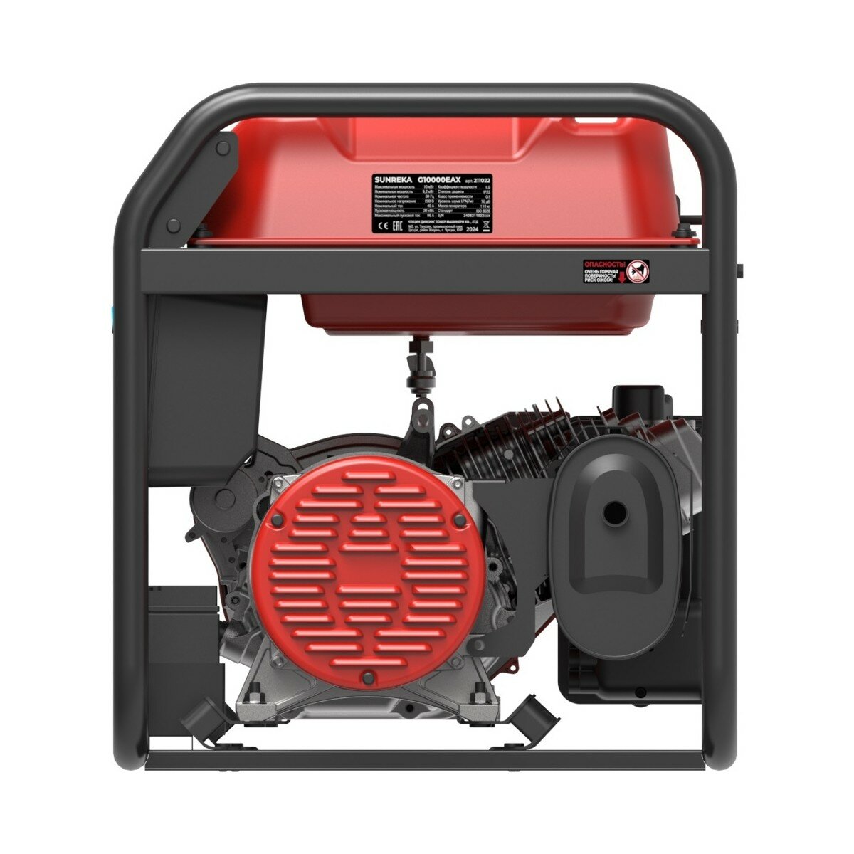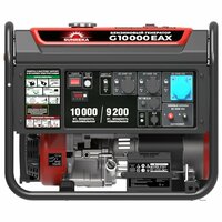 Двигатель генератора G10000EAX рабочим объемом 520 см3 и мощностью 19 л. с. оснащается электростартером и сменной аккумуляторной батареей для запуска с ключа. Генератор запускается быстро и легко даже при низких температурах, работа воздушной заслонки автоматизирована, поэтому управиться с данной моделью под силу даже женщинам и пожилым людям.