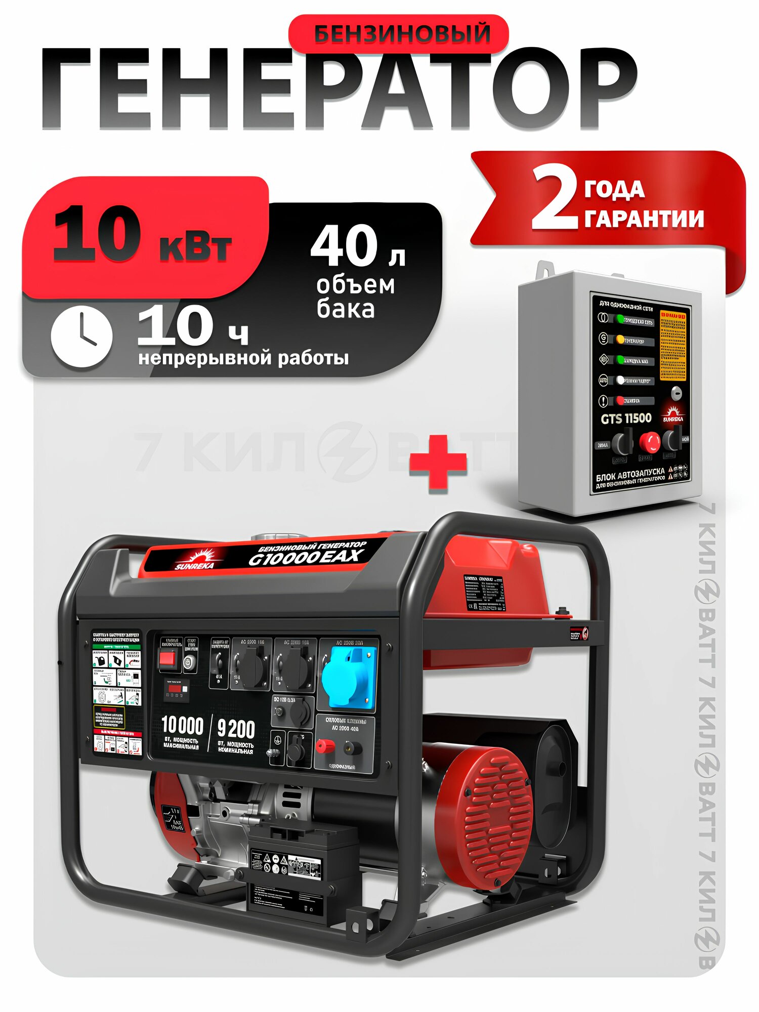 Купить Бензиновый генератор SUNREKA G10000EAX (10 кВт ) + Блок автоматики АВР 230В GTS11500 с доставкой по всей России. Бензиновый генератор SUNREKA G10000EAX (10 кВт ) + Блок автоматики АВР 230В GTS11500: сравнение цен, характеристики, фото, актуальное наличие и цены.