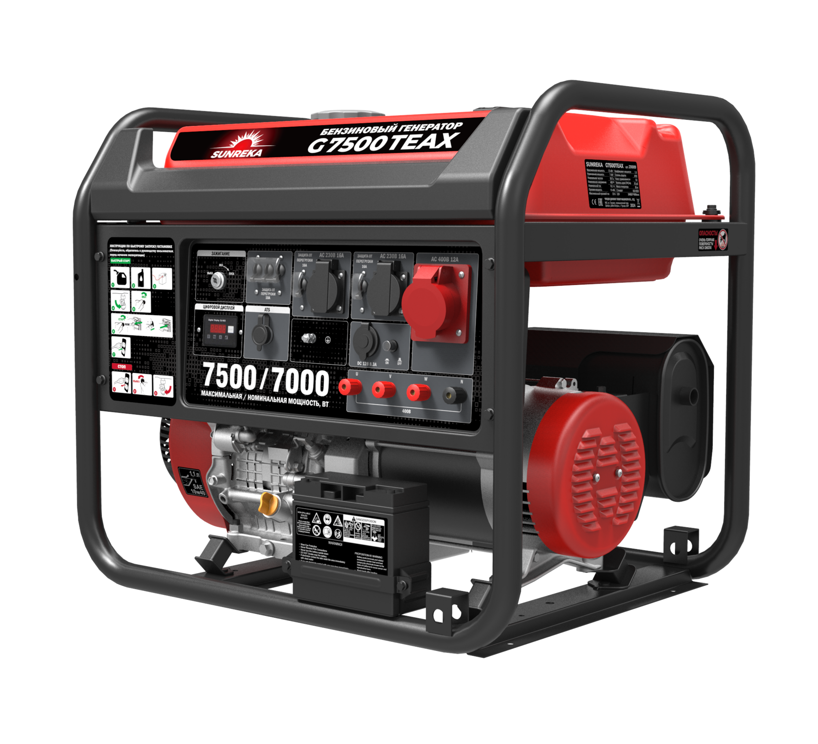 Купить Бензиновый генератор SUNREKA G7500TEAX, 7.5 кВт, 10.1 А, 40 л, электростартер с доставкой по всей России.