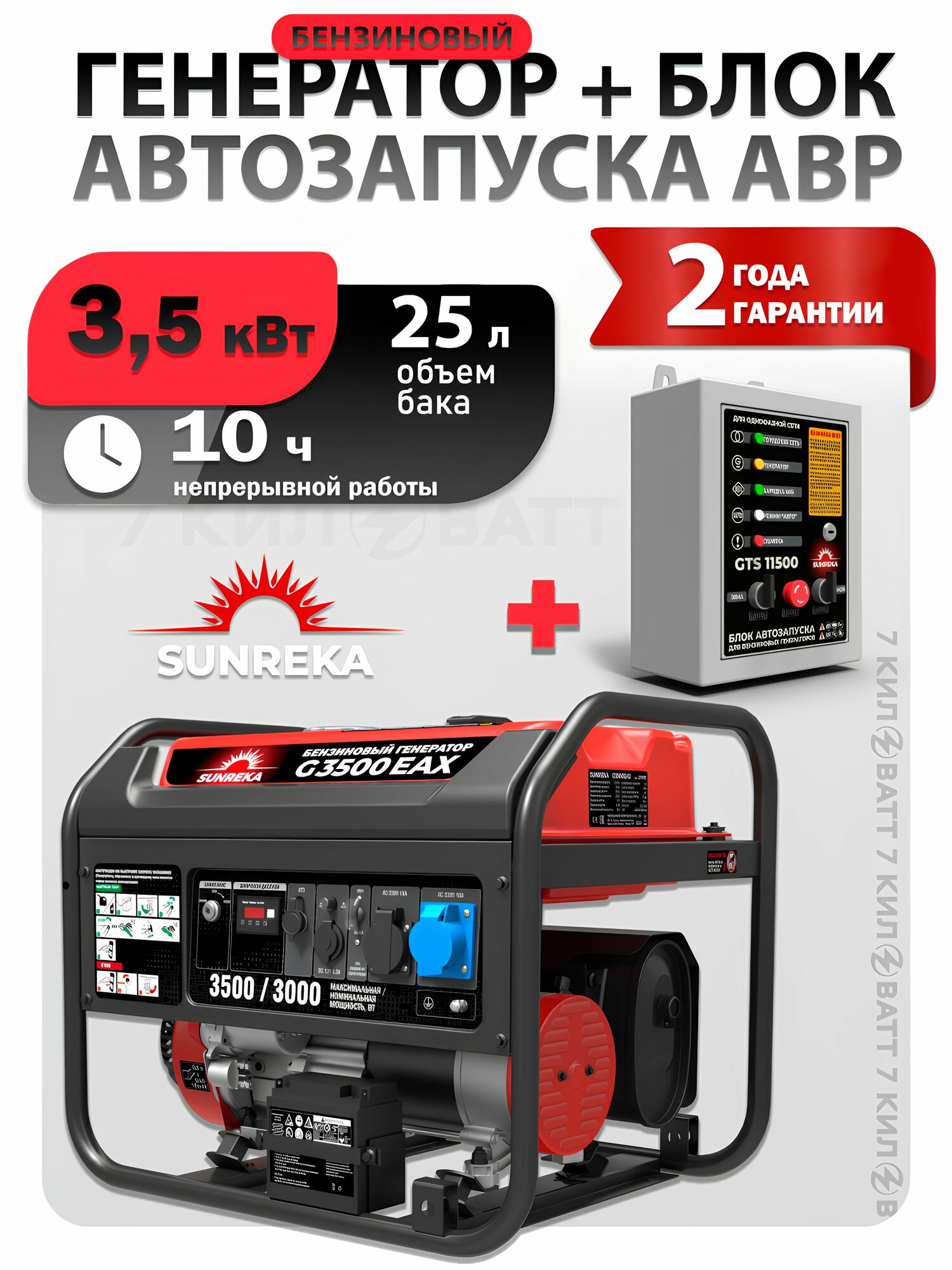Бензиновый генератор SUNREKA (Getink) G3500EAX(3.5 кВт ) + Блок автоматики АВР 230В GTS11500: сравнение цен, характеристики, фото, актуальное наличие и цены.