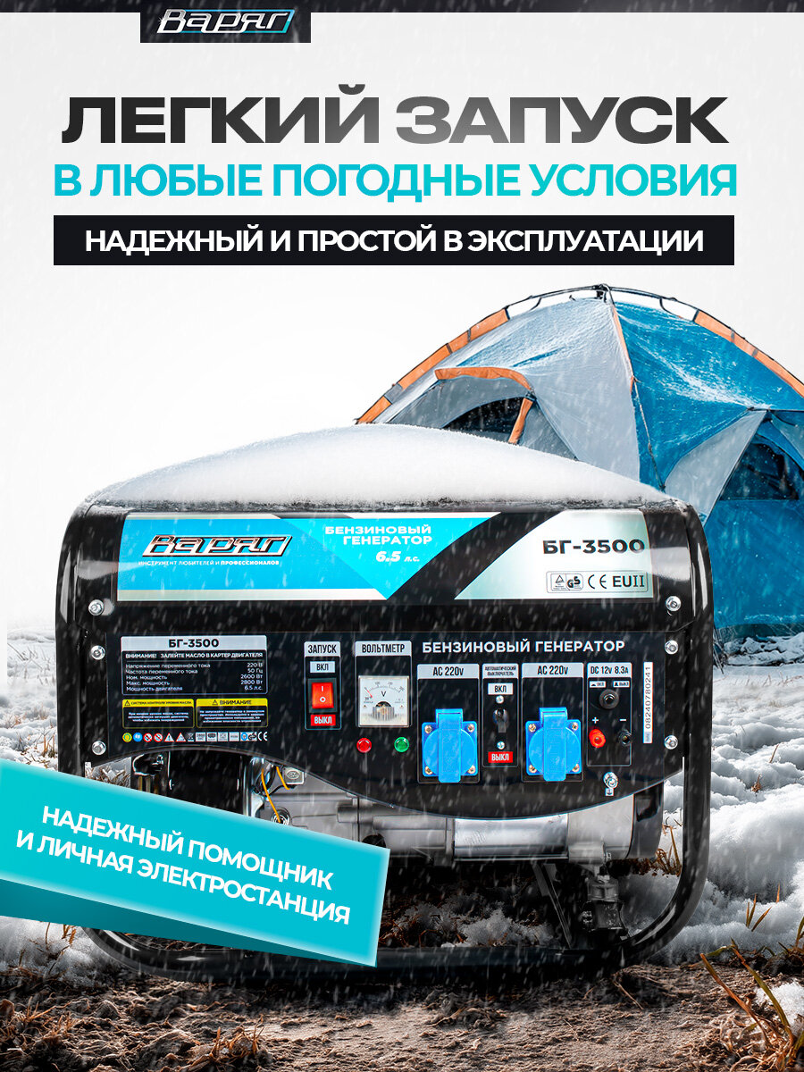 Бензиновый генератор варяг БГ-3500, 2.8кВт, вольтметр, защита от перегрузки: сравнение цен, характеристики, фото, актуальное наличие и цены.