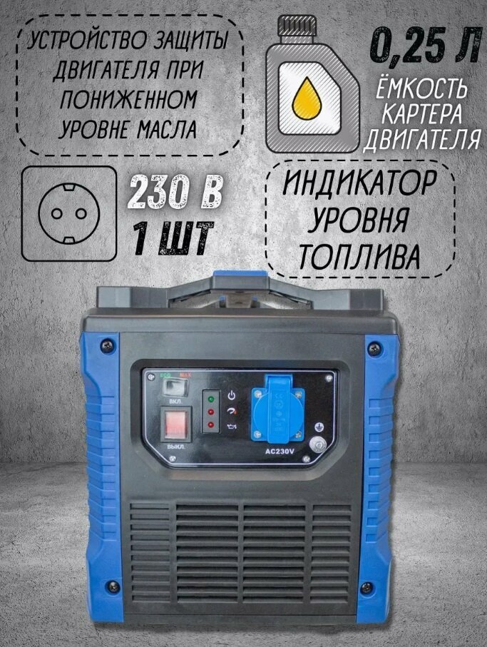 | Особенности | инверторный генератор, Автоматическое отключение при недостаточном уровне масла, Защита от перегрузок, Рукоятка для переноски |