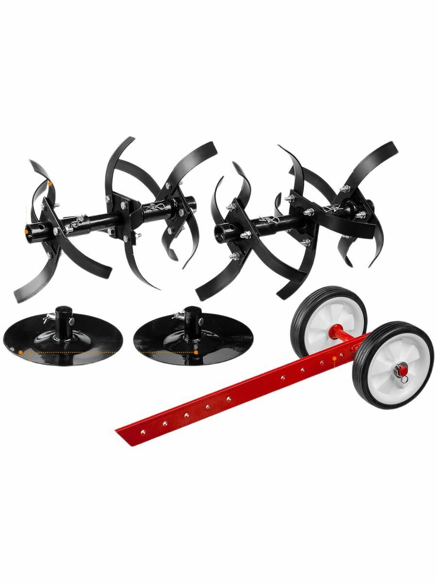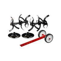 | Подробная комплектация | Культиватор 1, Фрезы (6 групп по 4 ножа) 1, Сошник в сборе с транспортировочными колесами 1, Боковые диски 2, Комплект крепежа 1, Руководство по эксплуатации 1. |