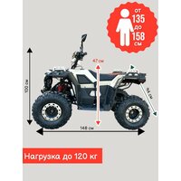 Бензиновый квадроцикл Apokani 125 — идеальный выбор для активного отдыха и развития навыков управления. Объём двигателя 125 куб. см обеспечивает мощность 8 л. с, позволяя развивать скорость до 60 км/ч. Электростартер упрощает запуск без лишних усилий, а компактные габариты (вес 110 кг) обеспечивают манёвренность даже на сложной местности. Квадроцикл рассчитан на двух пассажиров и подходит для райдеров ростом от 130 см. Комплектация включает передний и задний багажники, а также стильные цветные накладки на диски. Прочный кузов и усиленная конструкция гарантируют надежность при езде. Безопасность дополнена простым управлением и отсутствием необходимости водительского удостоверения. С вместительным баком на 3 литра вы сможете провести весь день на свежем воздухе. Современный дизайн и функциональные элементы делают модель универсальной как для прогулок, так и для спортивных занятий. Подходит для парков, лесов и других открытых пространств. Есть инструкция по эксплуатации — качественная, с цветными картинками (на английском)