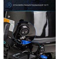 редуктор: 1.85 x; макс. ток генератора: 6 А; система подачи топлива: карбюратор; передача: вперед-нейтраль-назад; топливный бак: внешний; тип смазки: смесь; ход поршня: 54 мм; максимальные обороты двигателя: 5800 об/мин; диаметр цилиндра: 62 мм; объем внешнего топливного бака: 24 л