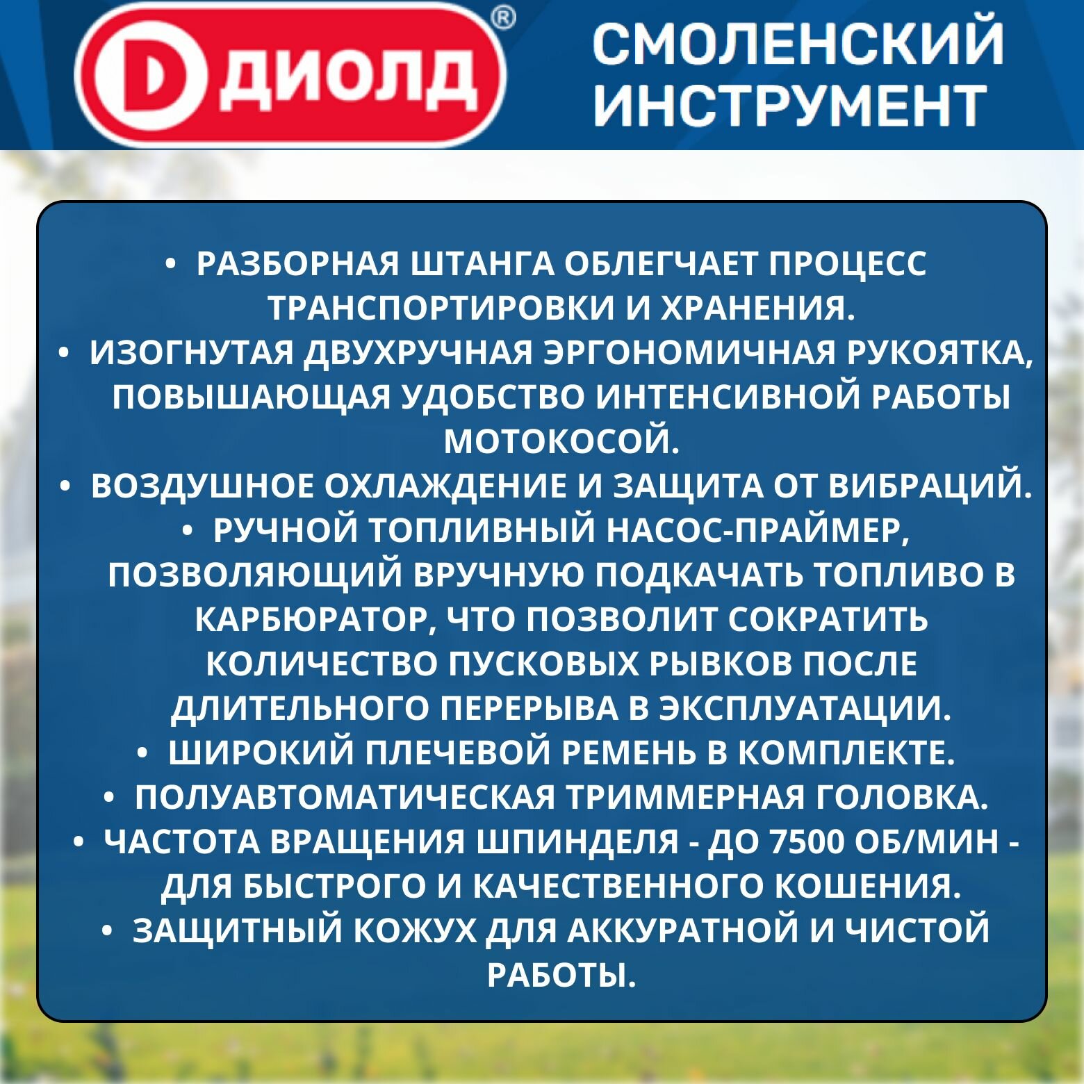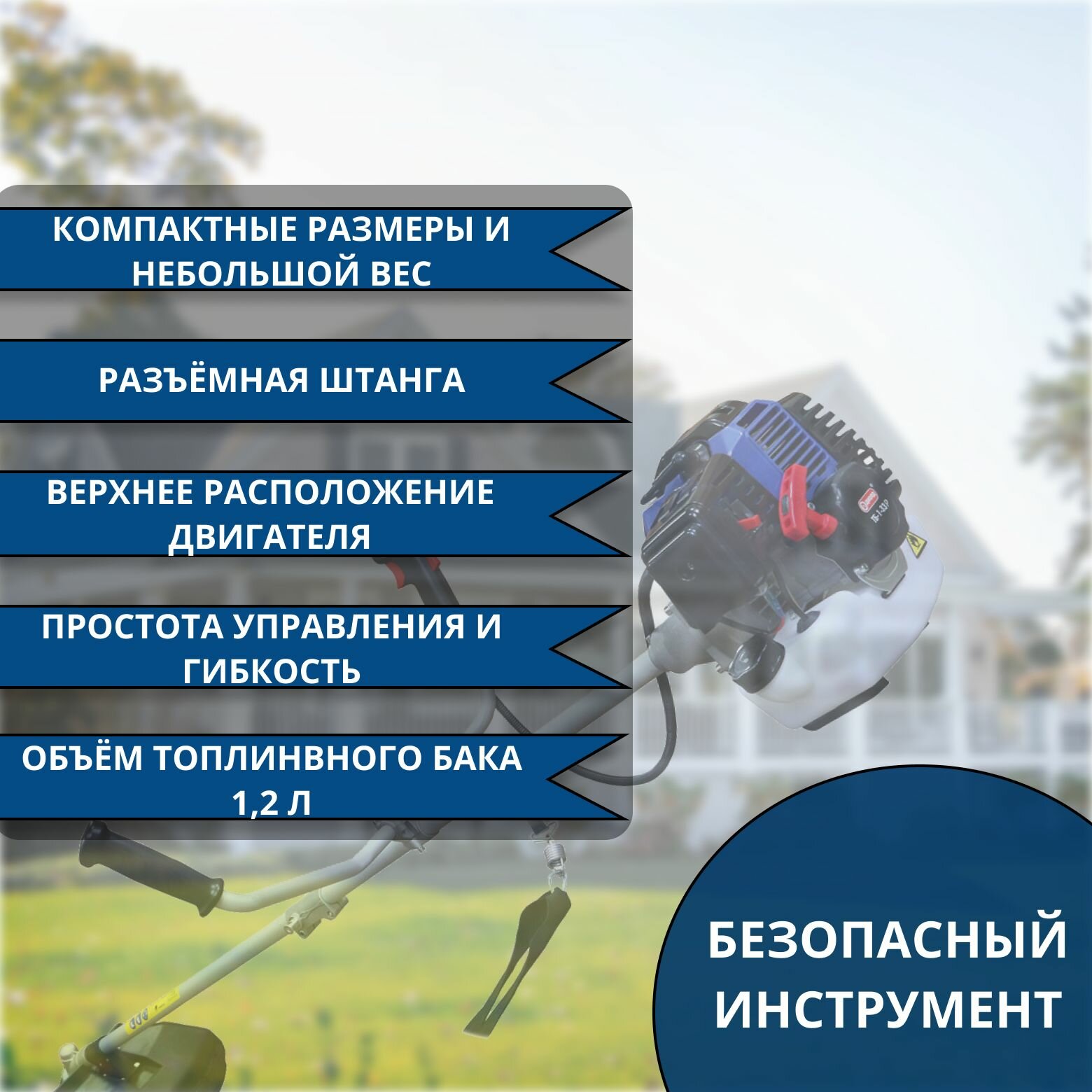 | Подробная комплектация | Двигатель триммера в сборе с рукояткой 1 шт. Штанга с редуктором 1 шт. Бобина с леской 1 шт. Диск (нож) 1 шт. Ремень 1 шт. Защитный кожух с комплектом крепежа 1 шт. Емкость для топлива 1 шт. Комплект крепежа 1 шт. Комплект ключей - отвёртка 1 шт. Руководство по эксплуатации 1 шт. |