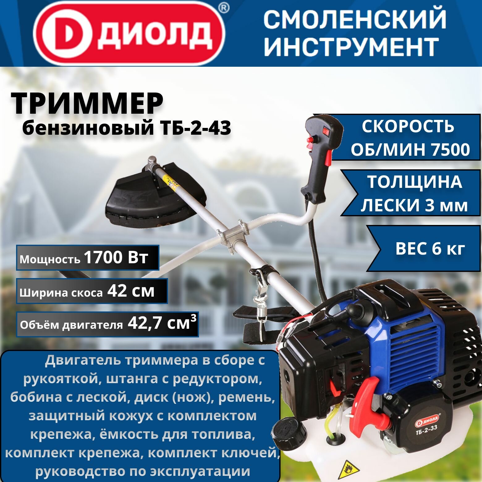 | Объем двигателя | 43 см³ |