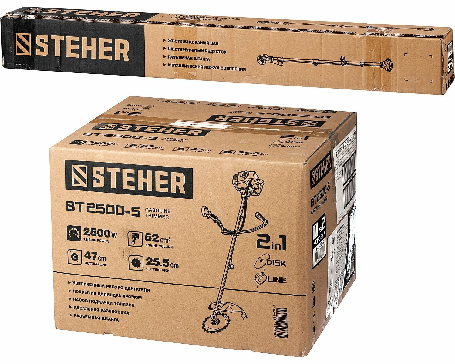 | Подробная комплектация | Бензиновый триммер STEHER 2.5 кВт (BT-2500-S) |
