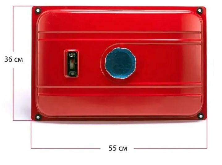 Бак топливный для генератора на 15 литров, в сборе Расстояние между центрами отверстий для крепления к раме 505х335 мм Размер 550х360х120 мм В комплекте: фильтр топливный, пробка, кран топливный, 4 амортизатора, поплавок
